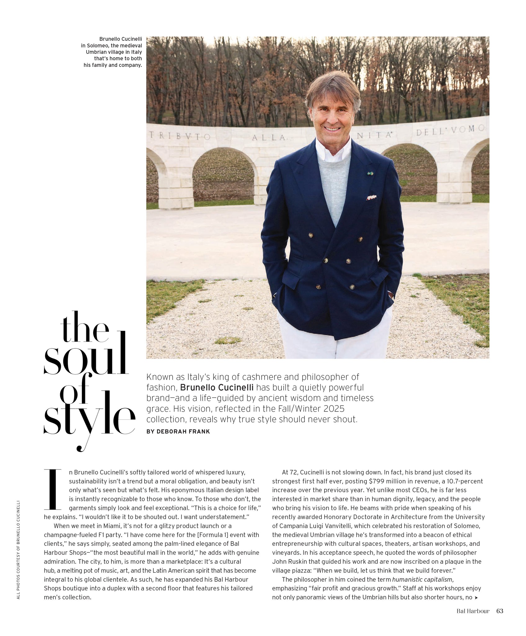 The Fall 2025 issue breaks from the norm with model Romy Schonberger donning a dreamy Ferragamo gown on a pristine Mexican beach. We invite you to rewrite the rules this season, too, and embrace the fashion you find in our pages as you see fit. As you prepare for fall and holiday travel, consider some of the destinations on our agenda—from a classic New York stay at The Mark to the Big Island beaches of Mauna Lani, or perhaps a private hilltop villa in the toniest of Caribbean enclaves, Mustique. We also bring you the best of the season’s accessories, jewels, and watches, as well as a few scintillating interviews with Etro’s Marco de Vincenzo, Brunello Cucinelli, and famed fashion photographer Pamela Hanson.