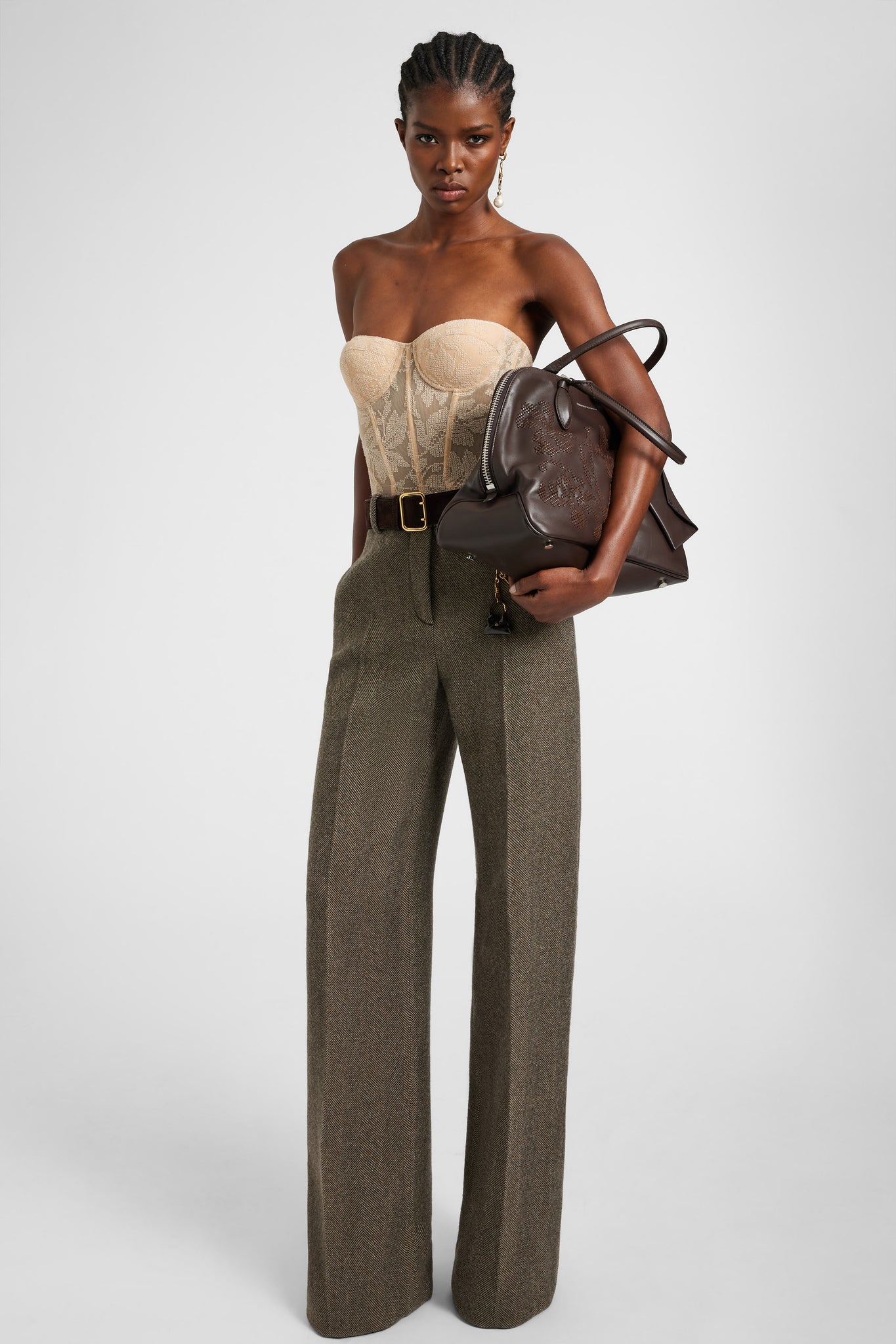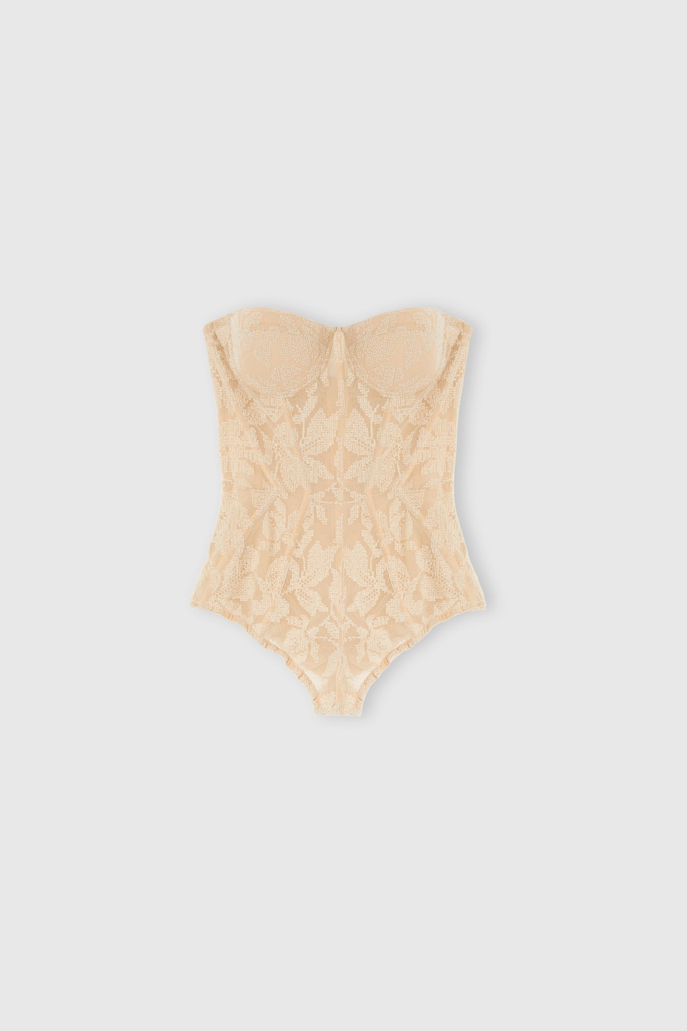 Sensual and sculptural, this corset-body captures the perfect balance between body architecture and couture refinement. Entirely crafted from the new piccolo punto floral lace—an exclusive by Ermanno Scervino—it envelops the silhouette with timeless elegance. The structured cups and internal boning shape the body with tailored precision, while the back fastening with lingerie hooks and a hidden zip ensures a flawless, comfortable fit. Presented onThe fW2526 runway, this piece is made to be seen, whether as refined lingerie or a bold style statement.