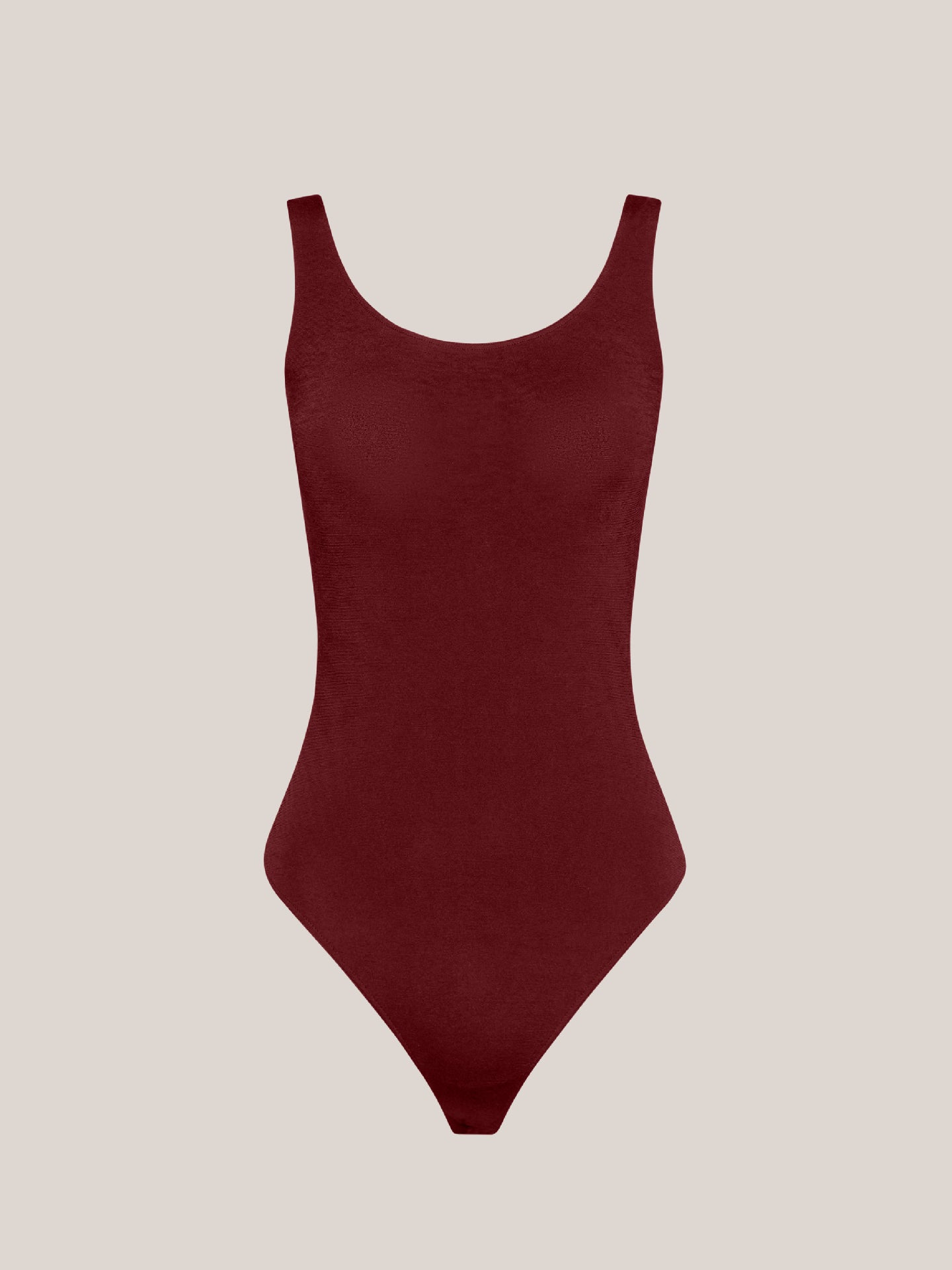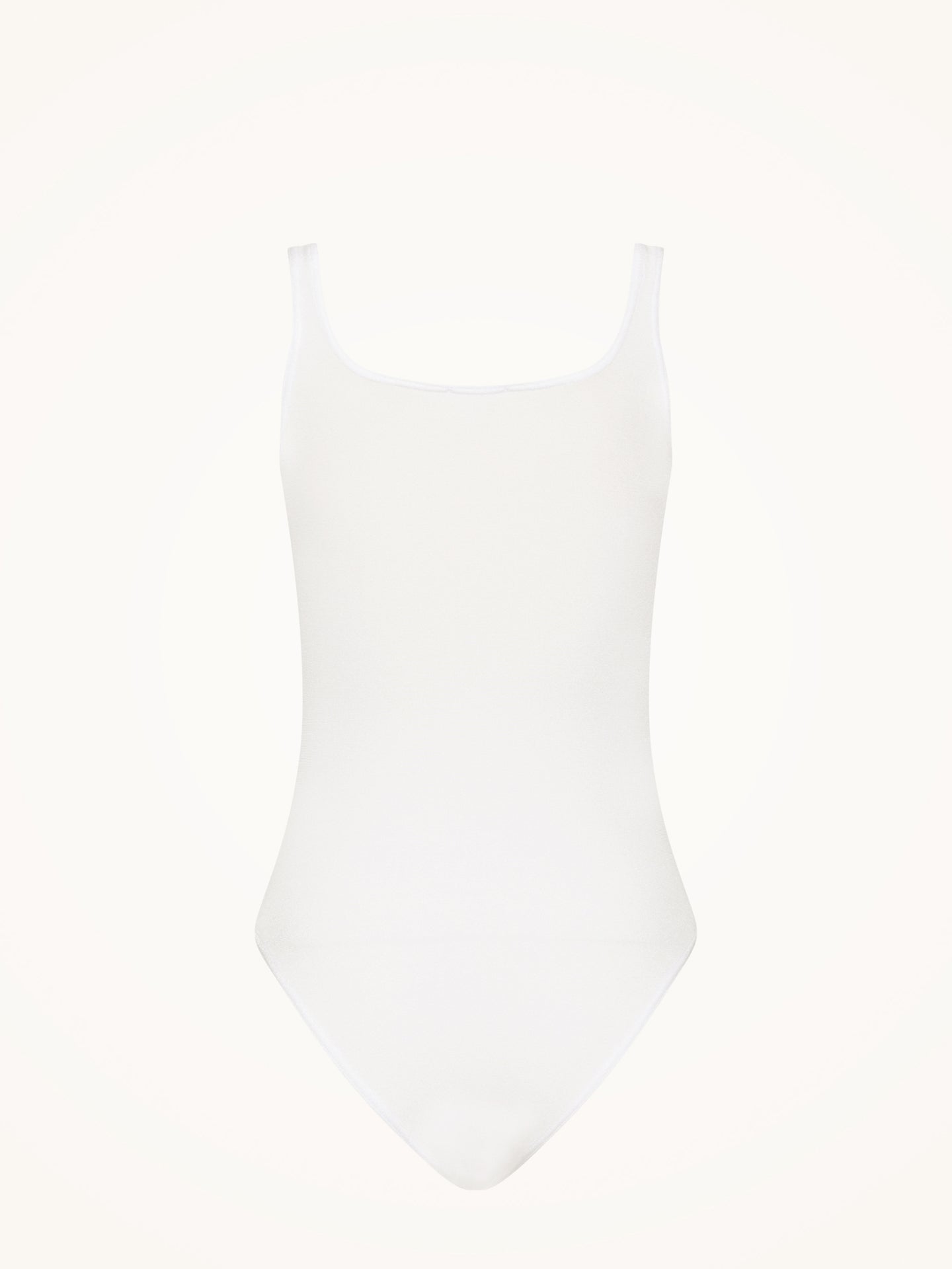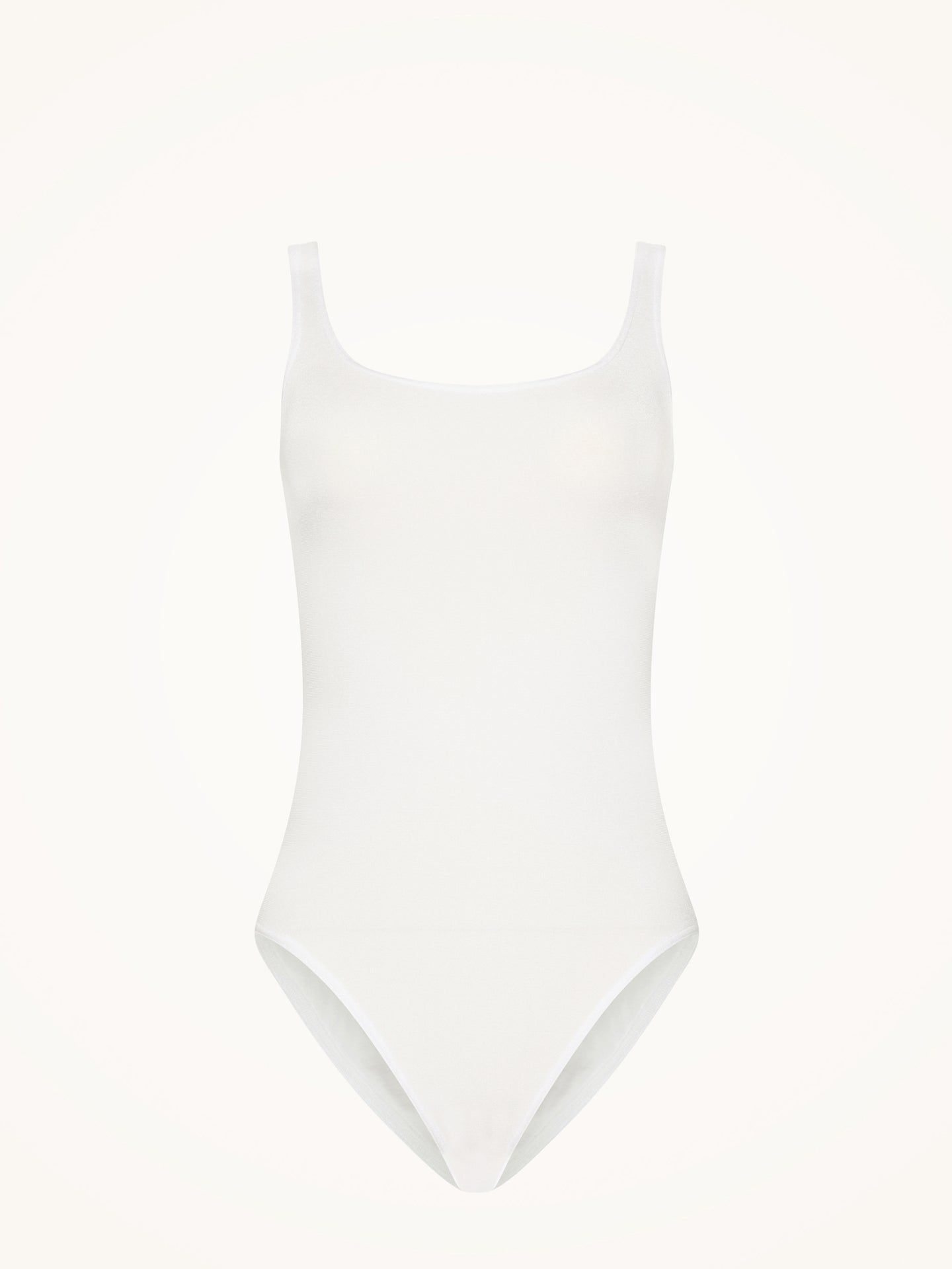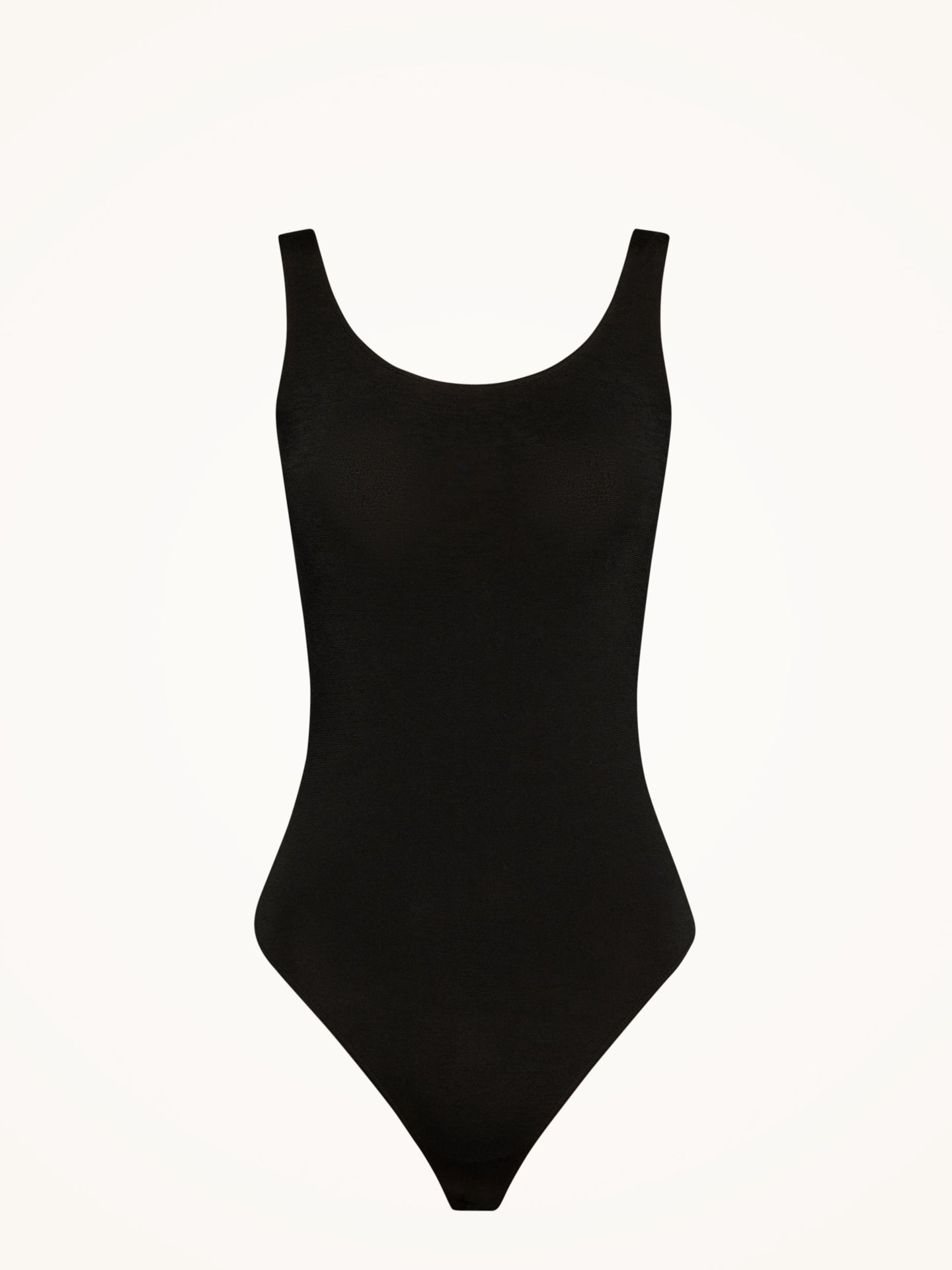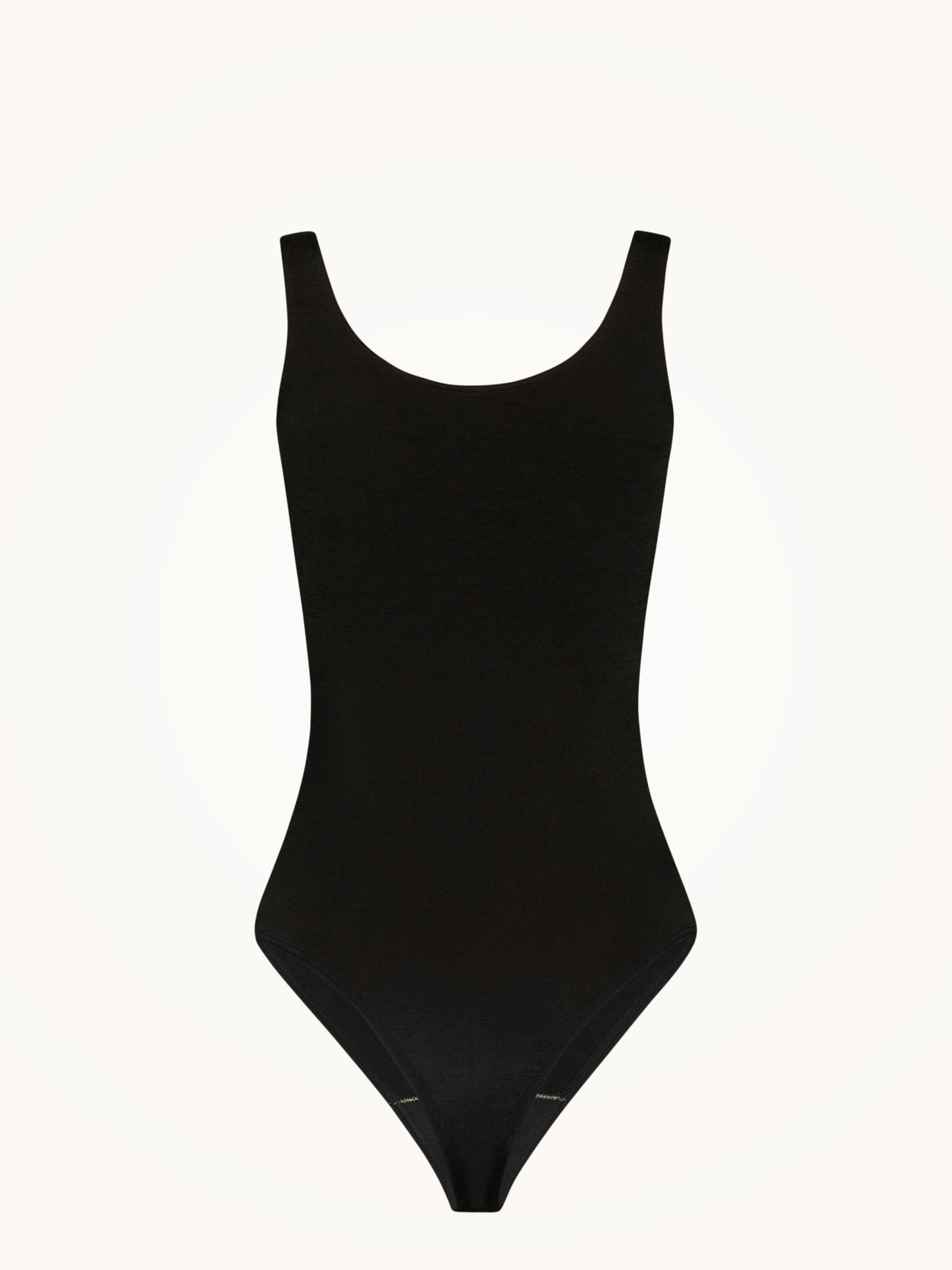Sleeveless Brazilian bodysuit The simple, sleeveless bodysuit is made from opaque circular-knit material, with a shiny finish and fine trim around the neck and shoulders. A slim fit and deep, round neckline enhance the silhouette. The bodysuit is completed with a Brazilian-cut bottom. ?Çó Iconic opaque natural circular knitted tube ?Çó Shiny optic ?Çó Seamless ?Çó Slim fit ?Çó Brazilian cut bottom ?Çó Fine workmanship at neck and armholes ?Çó Deep round neck ?Çó Sleeveless ?Çó Cotton gusset ?Çó Snap closure
