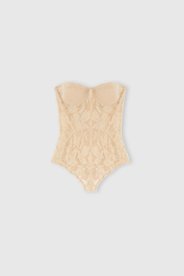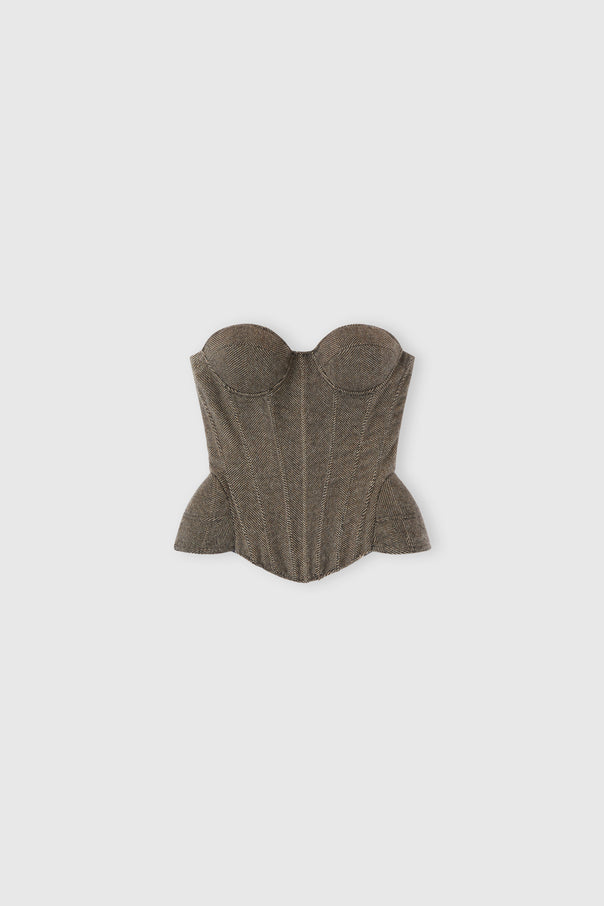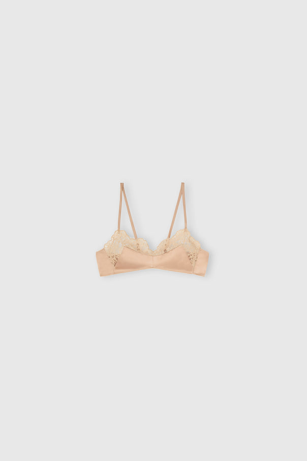 Unstructured wool blend bra with pied de poule pattern and lace applications