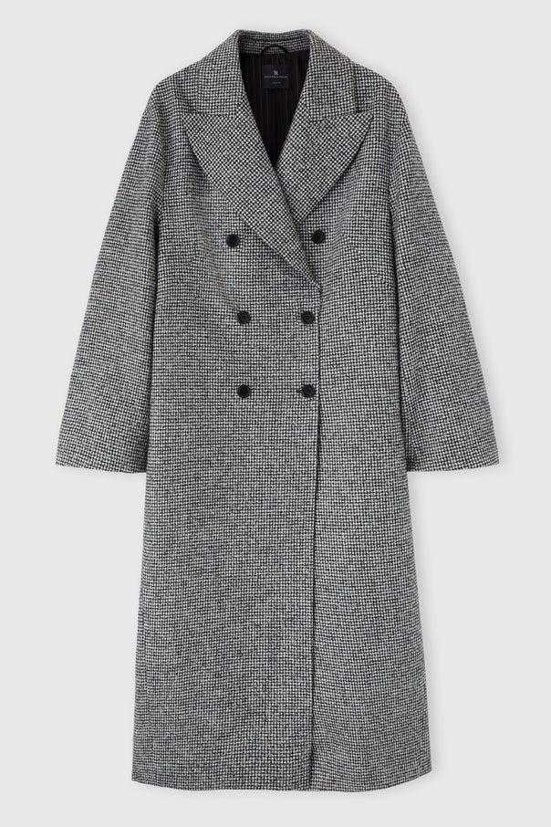 Oversize double-breasted coat in jacquard houndstooth wool blend