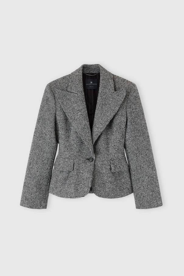 Tailored coat in a virgin wool, silk, and cashmere blend with resca pattern