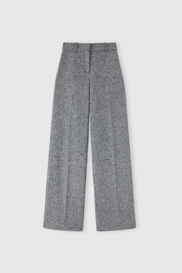 Palazzo trousers in wool, silk and cashmere with herringbone pattern