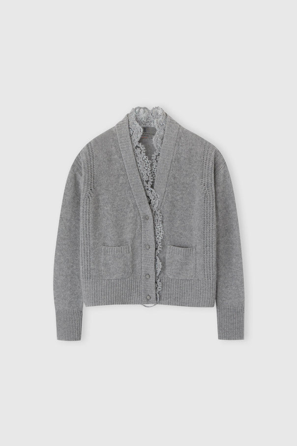 Pure cashmere cardigan with rebrodè lace and V-neck