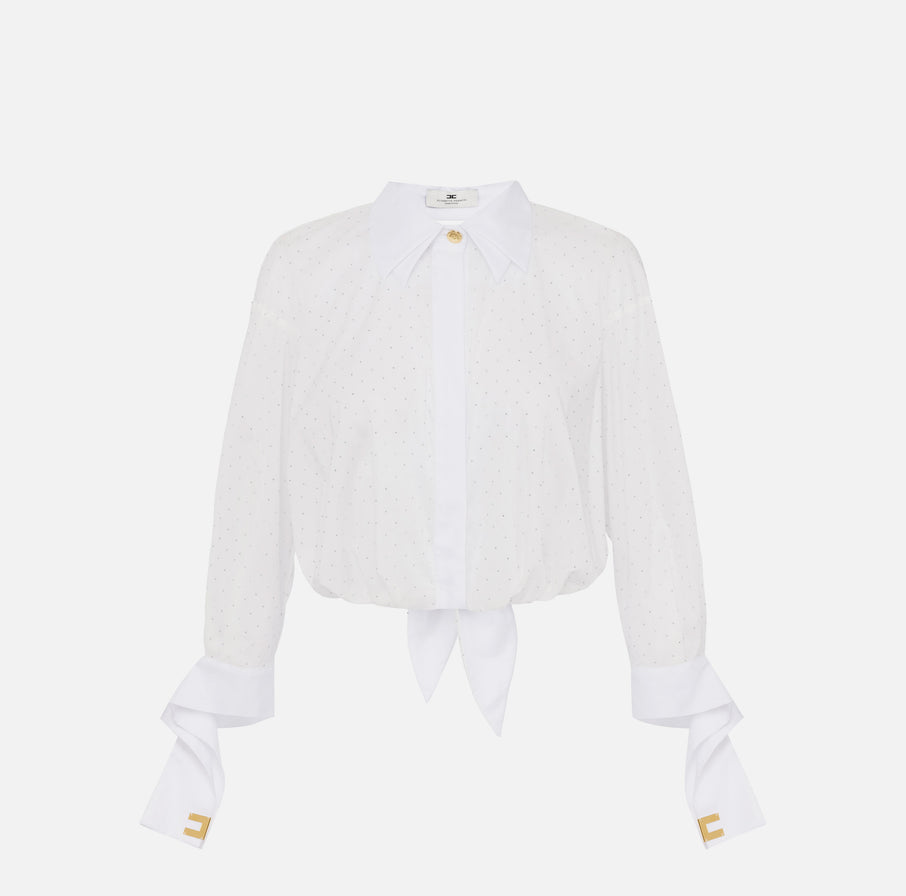Bodysuit-style blouse in georgette fabric with cufflinks