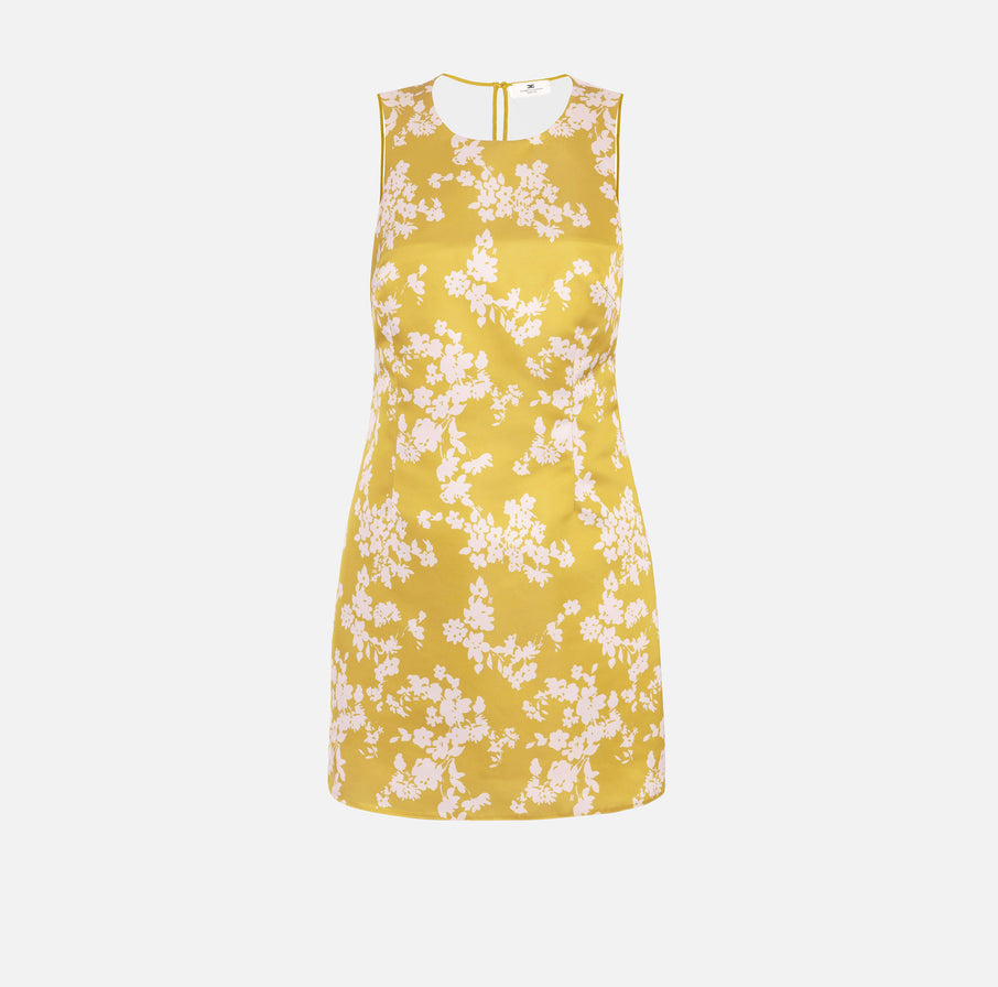 Dress in printed duchess satin and tulle fabric