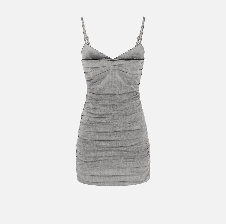 Denim mini dress with shoulder straps