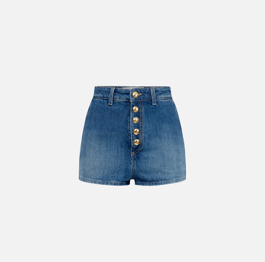Denim shorts with visible buttons