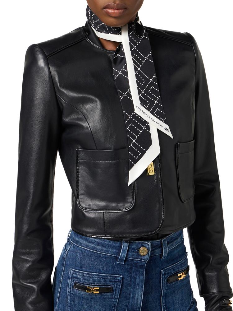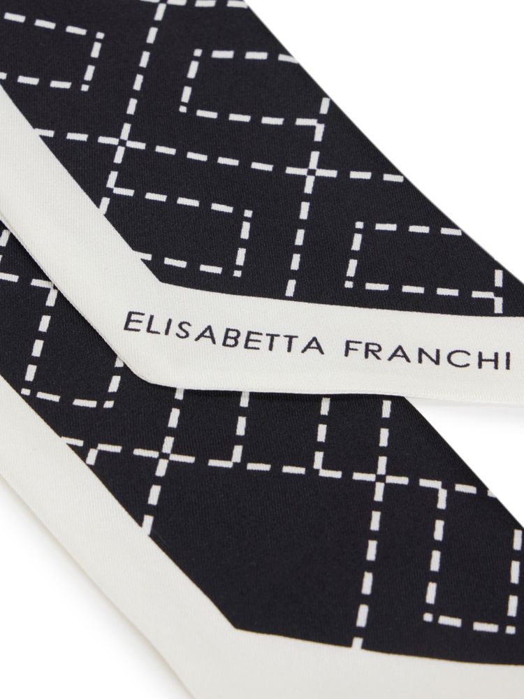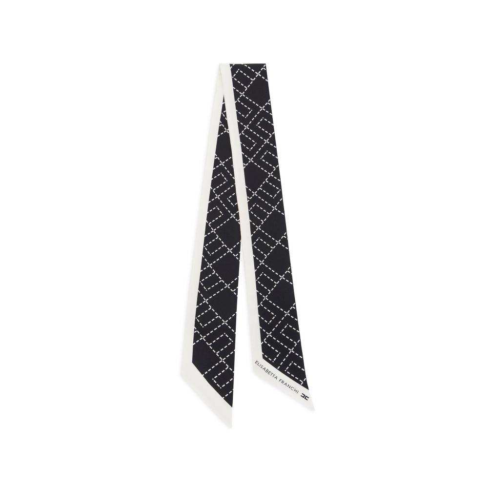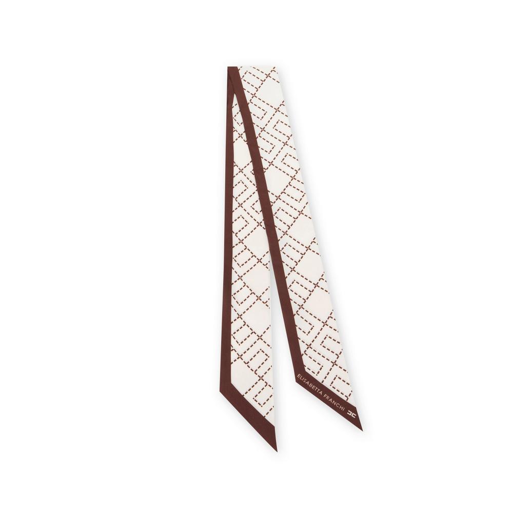 Long and thin silk twill foulard scarf. The all-over print recreates a sophisticated logo pattern, the contrasting solid-colour band lends definition.