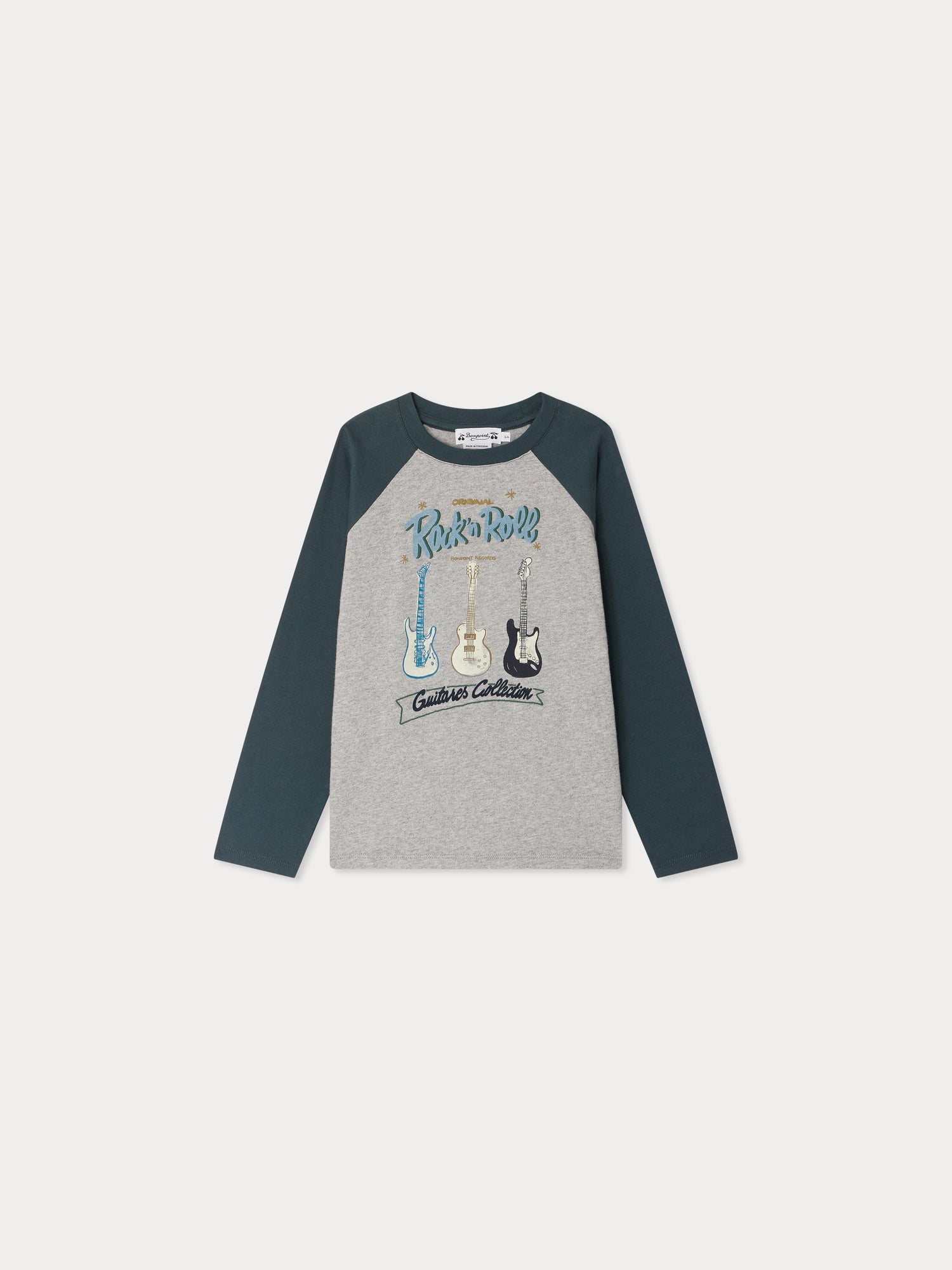 The Guri T-shirt for boys will add a touch of rock'n'roll to everyday outfits with its guitars printed on the front. This organic cotton design stands out with its contrasting raglan sleeves.