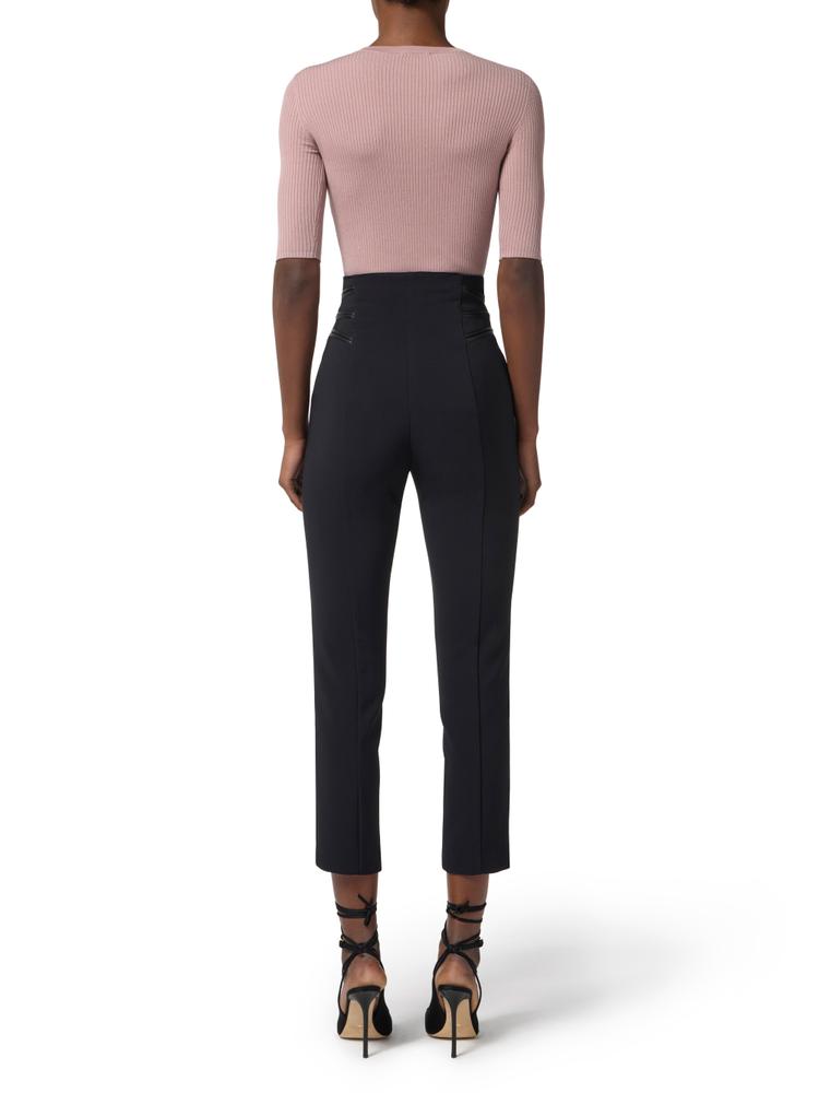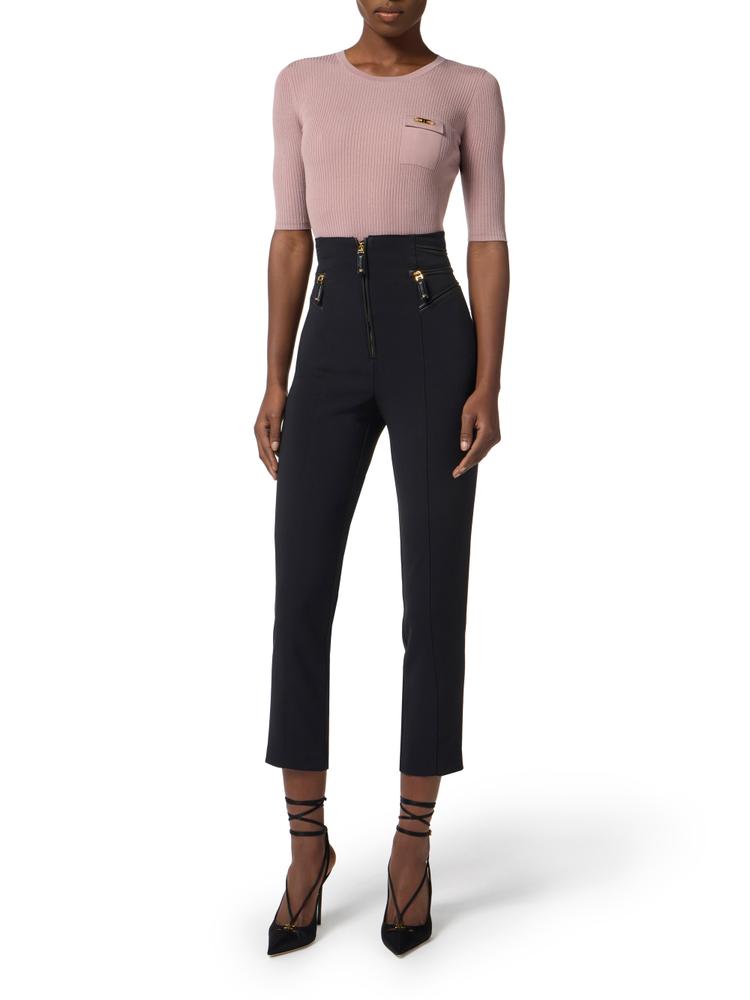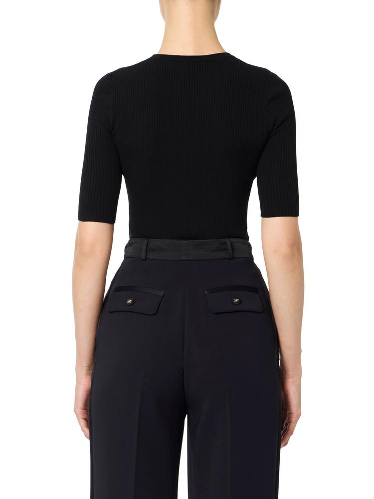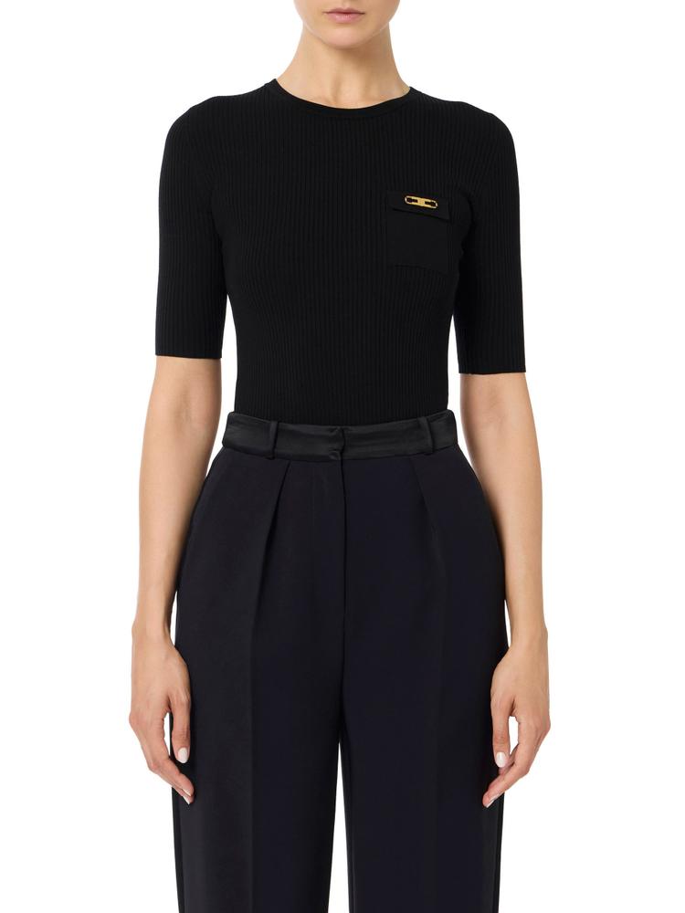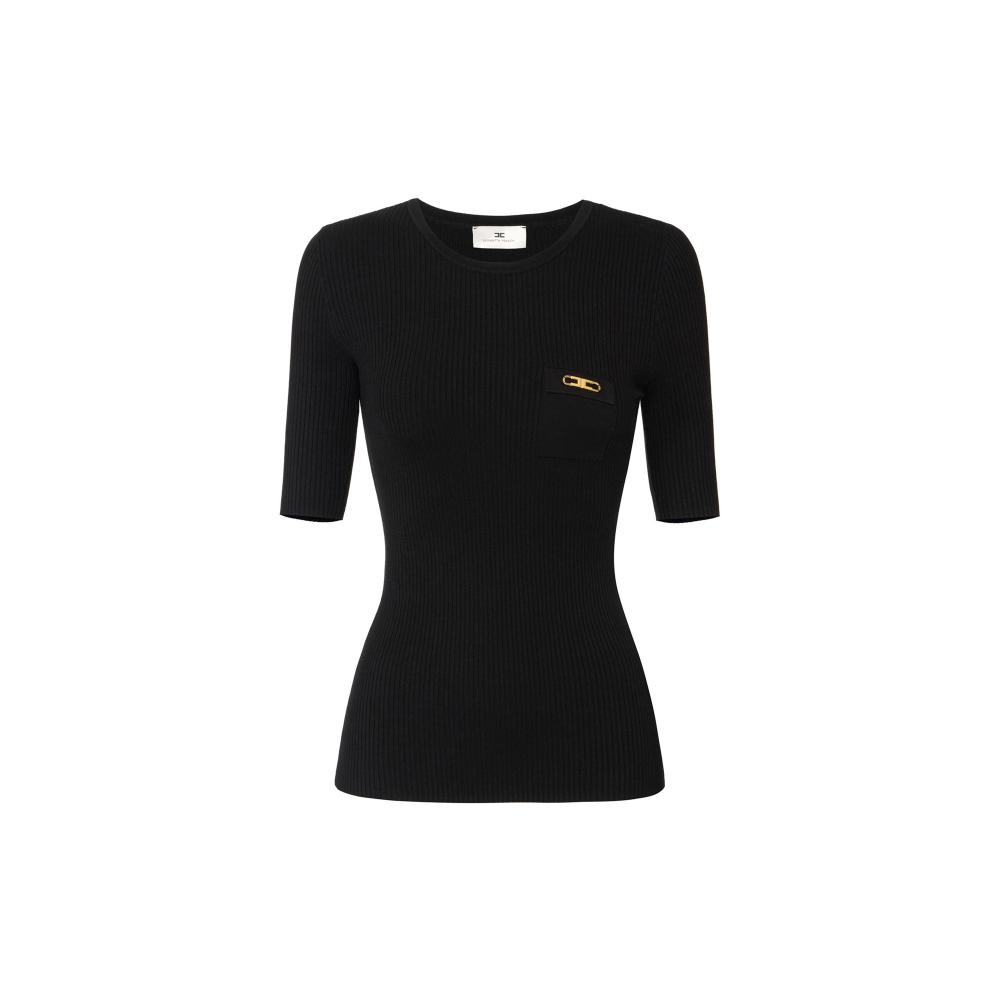 Top in ribbed knit fabric with slim fit. With a crew neck and above-the-elbow sleeves, it is personalised by the satin breast pocket with logo detail that adds a touch of light.