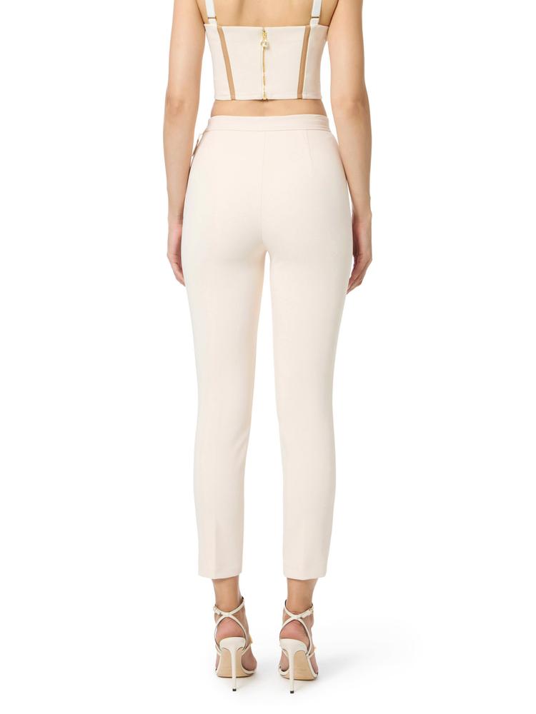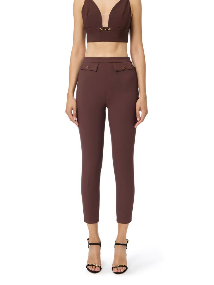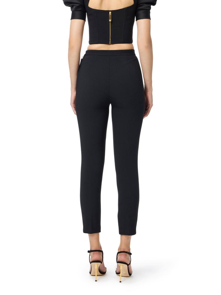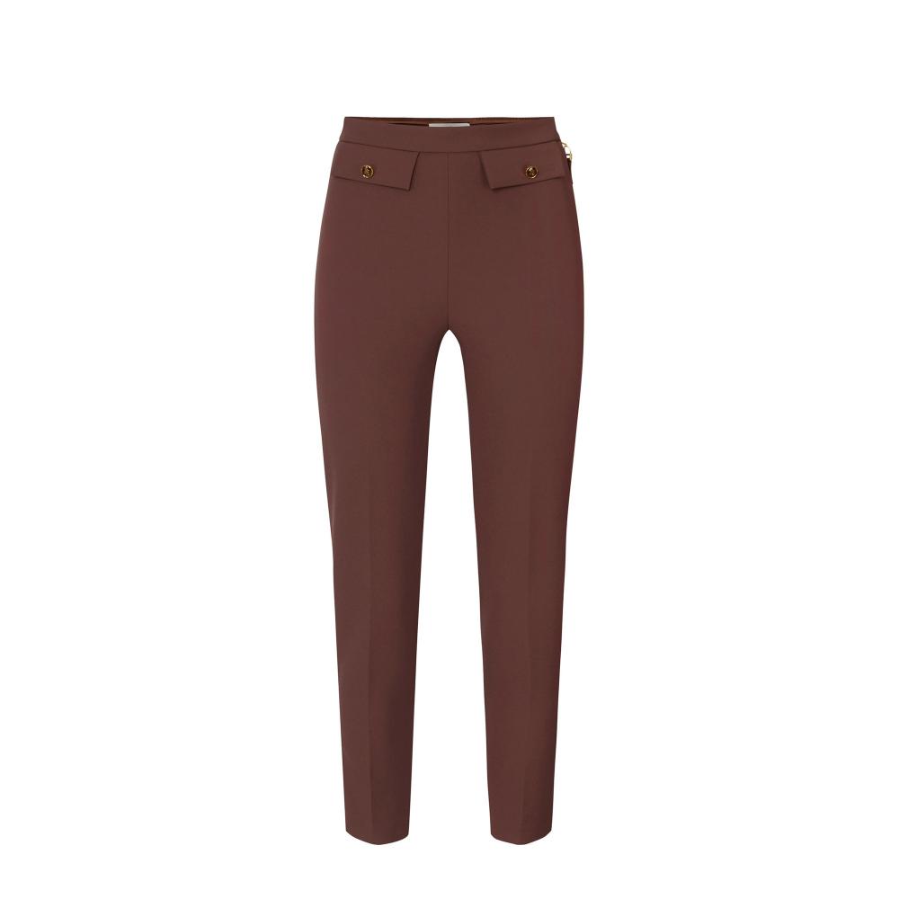 Trousers in double-layer crêpe fabric with slim fit and ankle length. With flap appliqués on the front and decorated with enamelled logo buttons, they have a side zip fastening with pull-tab. Part of the Essential collection, to create the perfect wardrobe.