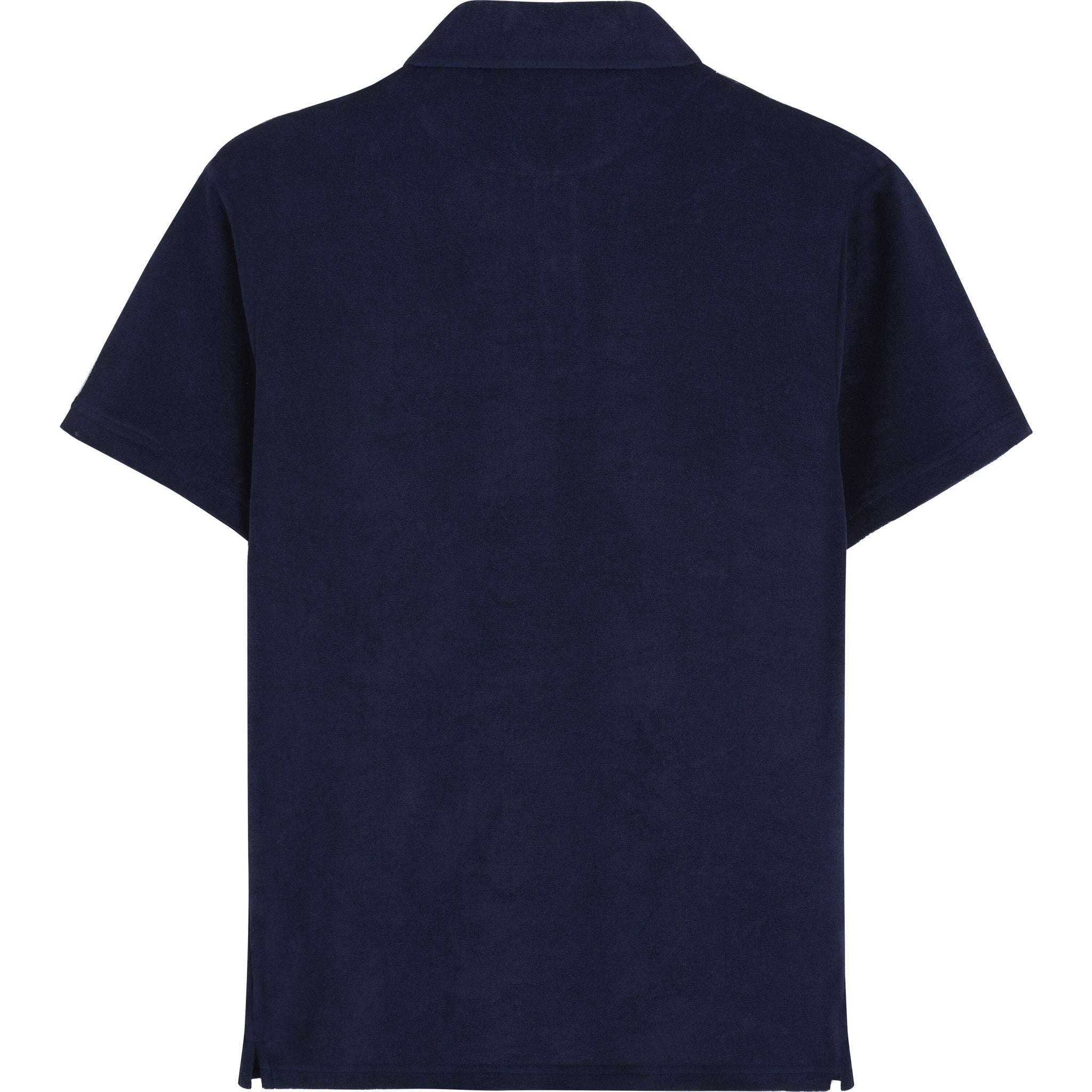 Look for the turtle on the new Phoenix men's plain terry cloth polo shirt. Soft, comfortable and trendy, this short-sleeved basic has a buttoned placket and an embroidered turtle on the front. It is suitable for all occasions, at the beach or around town.
