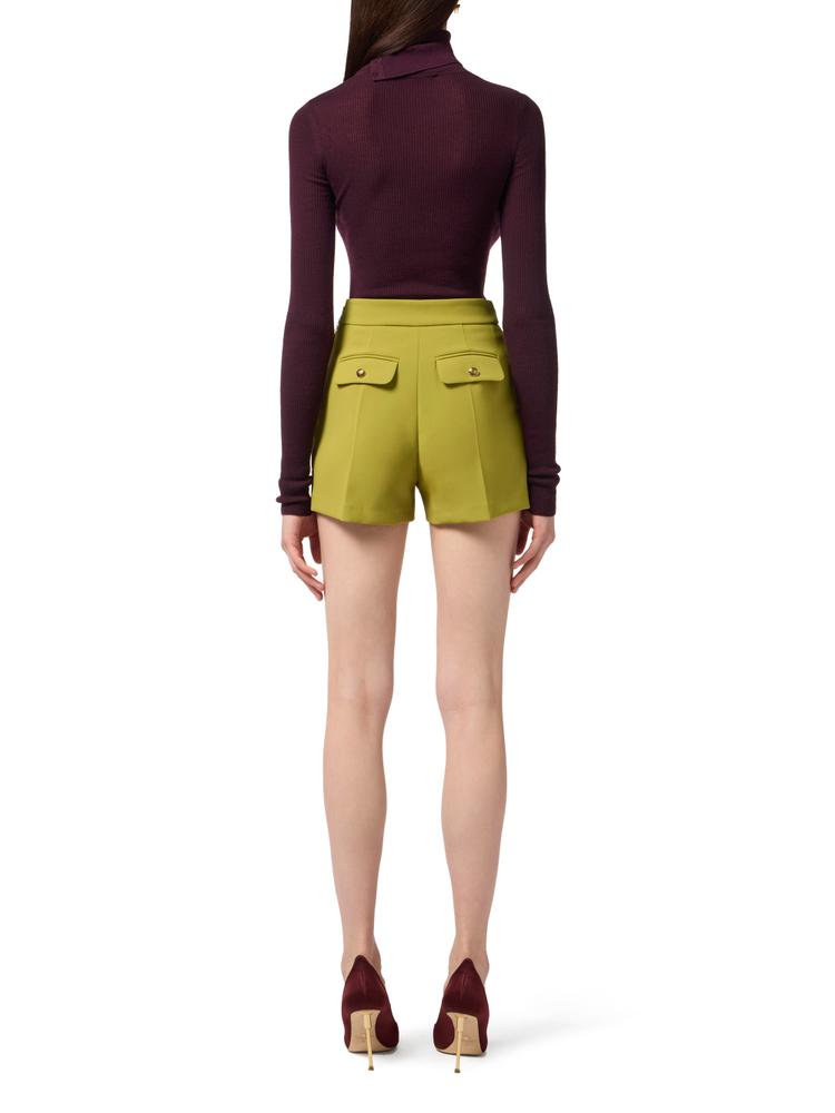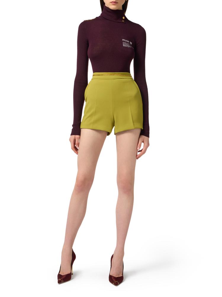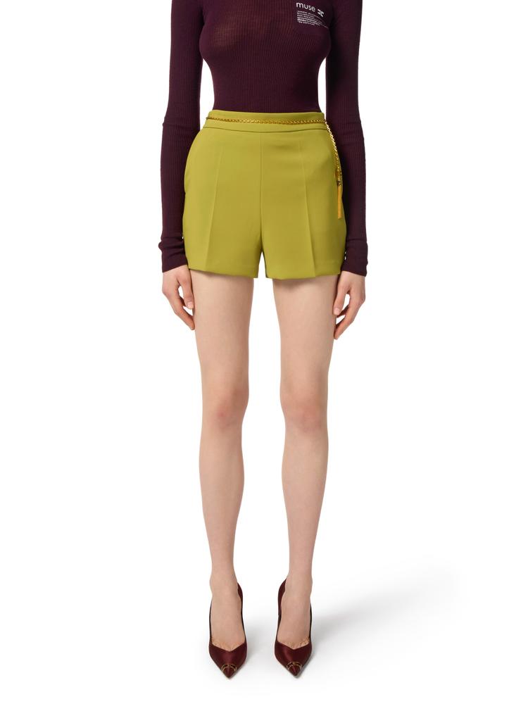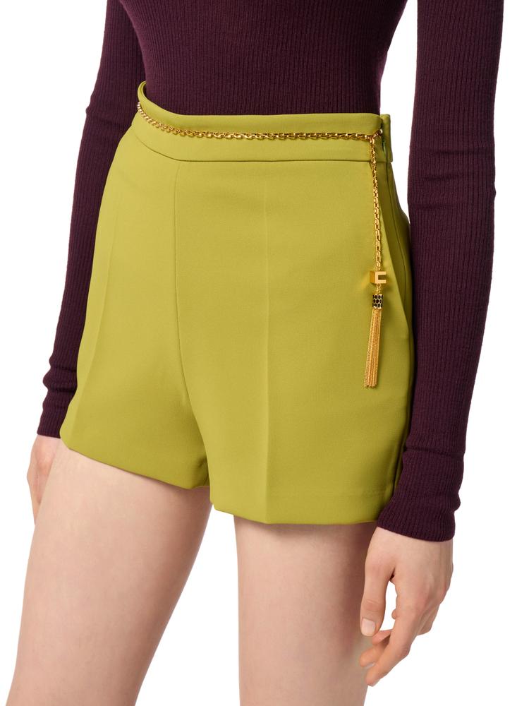 Shorts in lightweight crêpe fabric with slim fit. They feature pockets and are decorated by a chain belt with logo and hanging tassel at the waist. Enamel buttons with snake-inspired patterns give the garment a final touch of light.