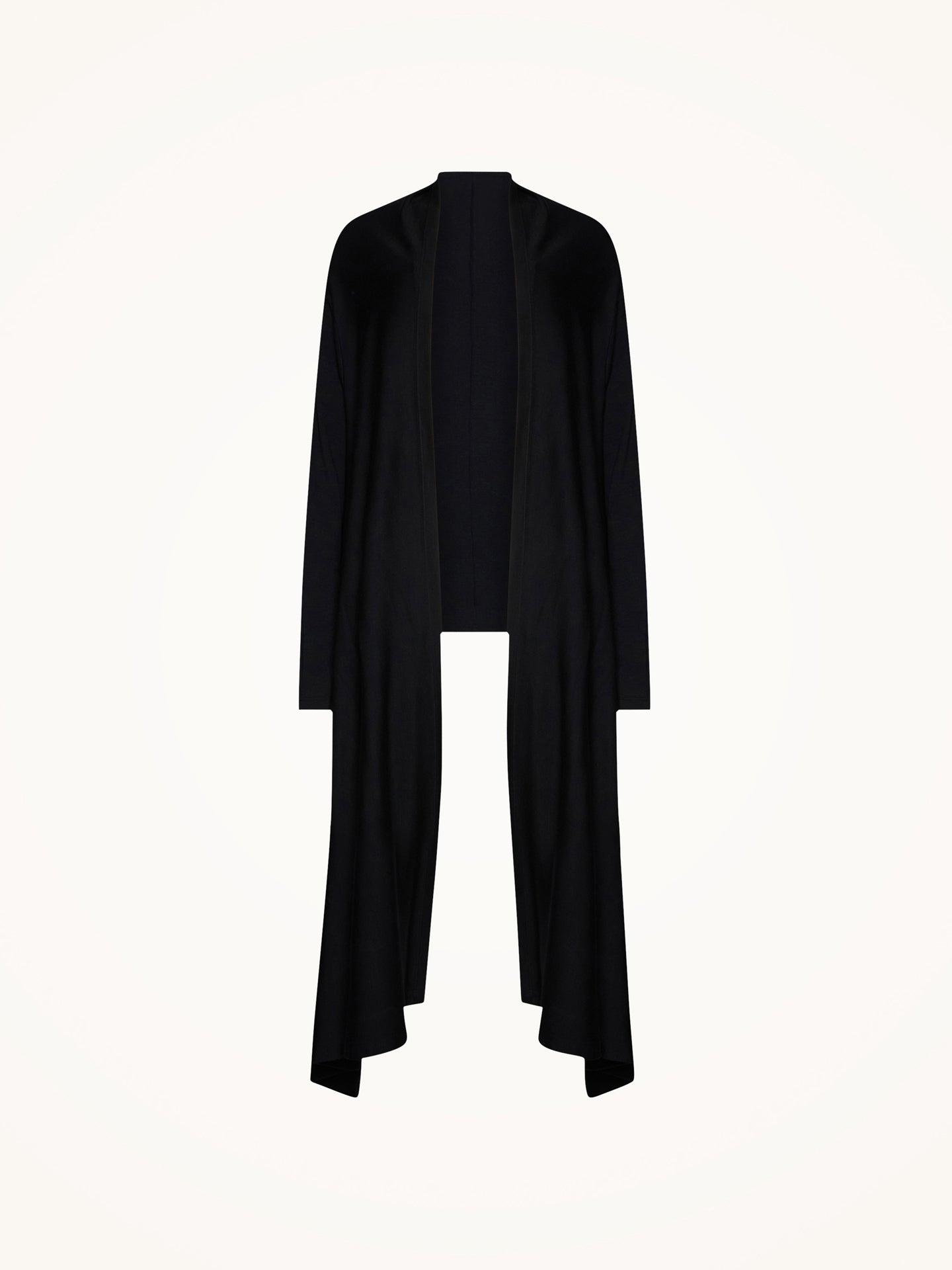 Fine Knit Open Cardigan Made from 100% virgin wool, the ultra-soft wrap cardigan can be left open or tied in many different ways. The back ends at the waist, with much longer, gently draped sections at the front. ?Çó 100% finest virgin wool quality with gentle hand feel ?Çó Material evolution of the wrap cardigan enabling various styling possibilities due to the versatile loose fit shape with longer edgings at fronts