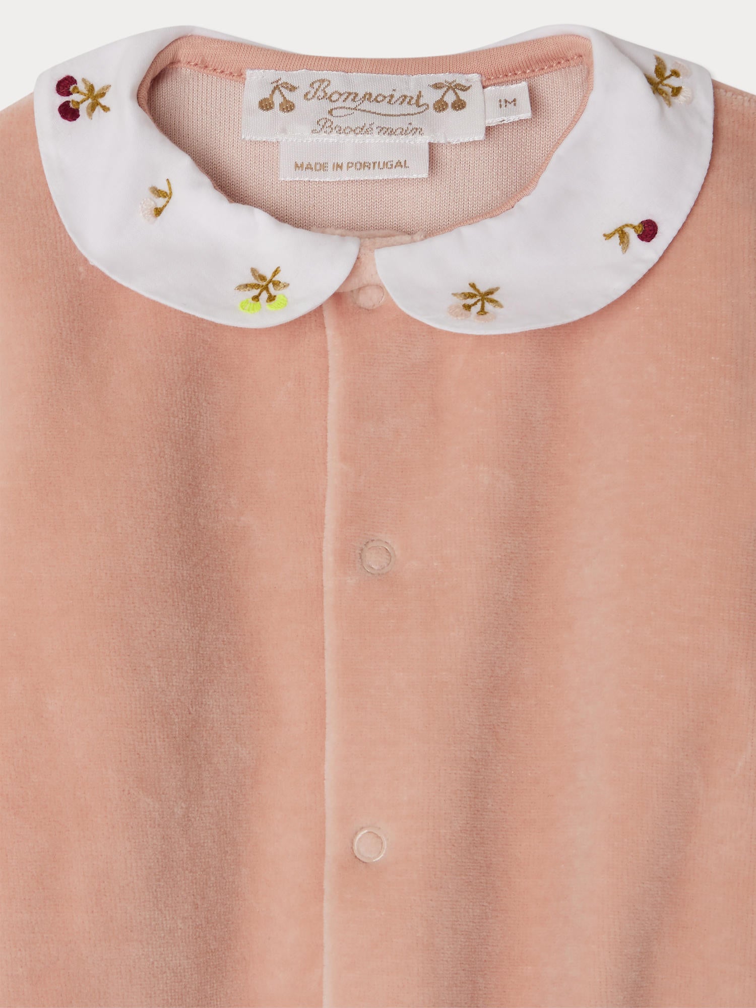 Tintina velvet pajamas with cherry embroidered velvet collar