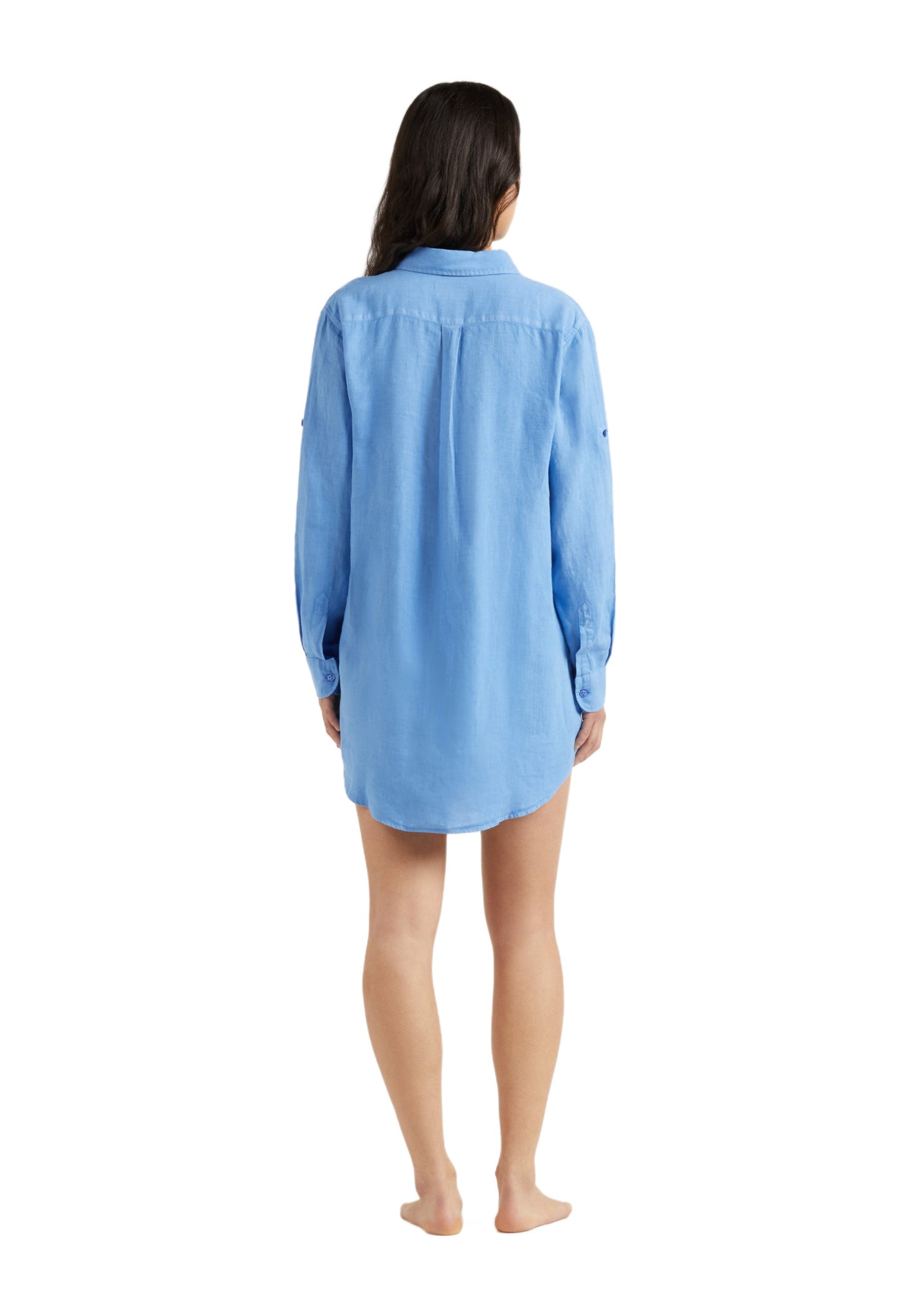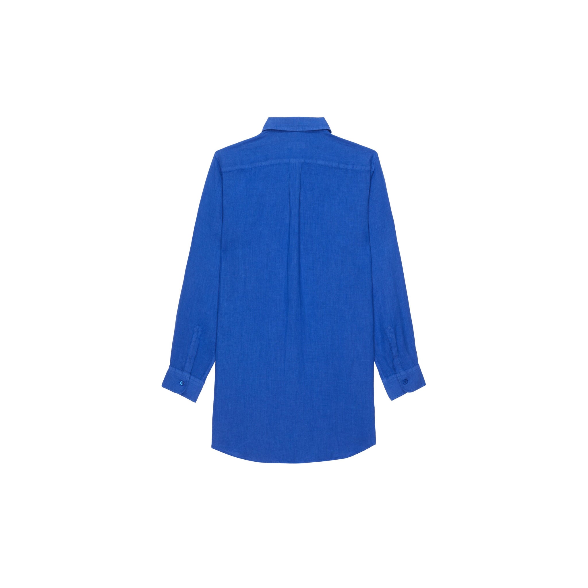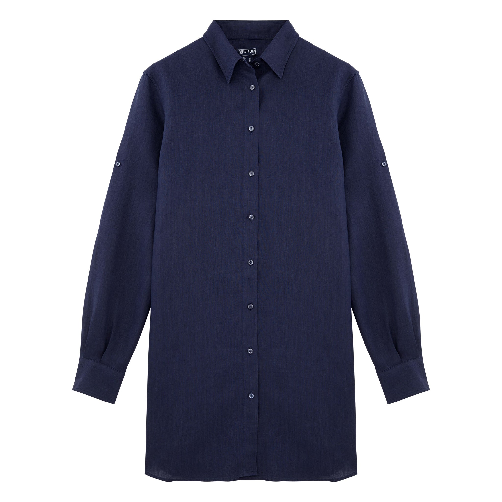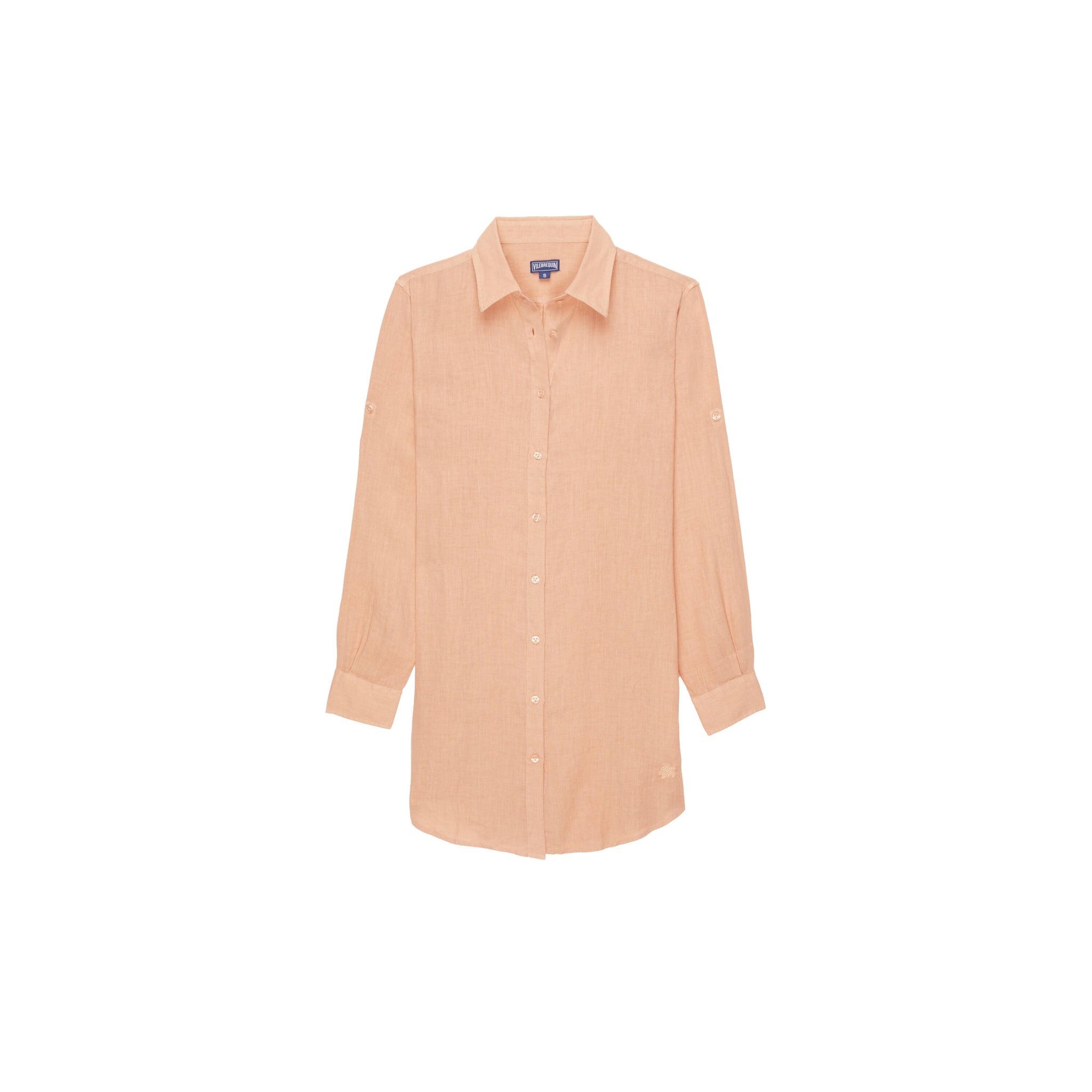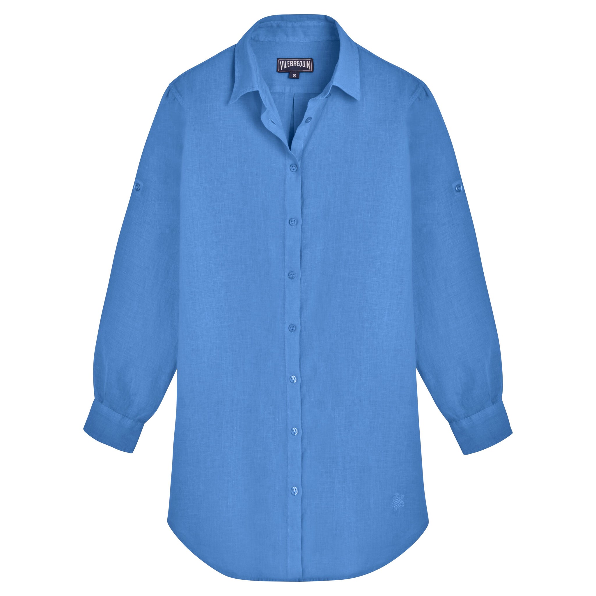 Slip on the Fragance women's shirt-dress over your swimsuit after your daily swim. The light and floaty linen fabric is particularly comfortable, making it perfect for laid-back holidays. Its loose cut and long sleeves makes this plain shirt the ultimate in casual chic.