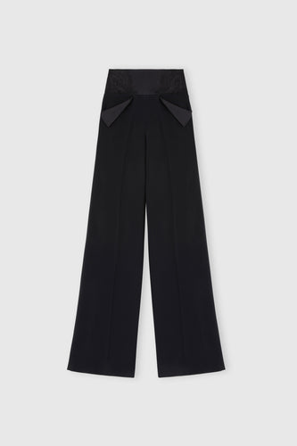 Palazzo trousers in wool blend with black and white pied de poulle- Regular price