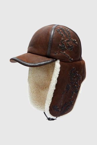Embroidered baseball-style hat with shearling ear flaps- Regular price