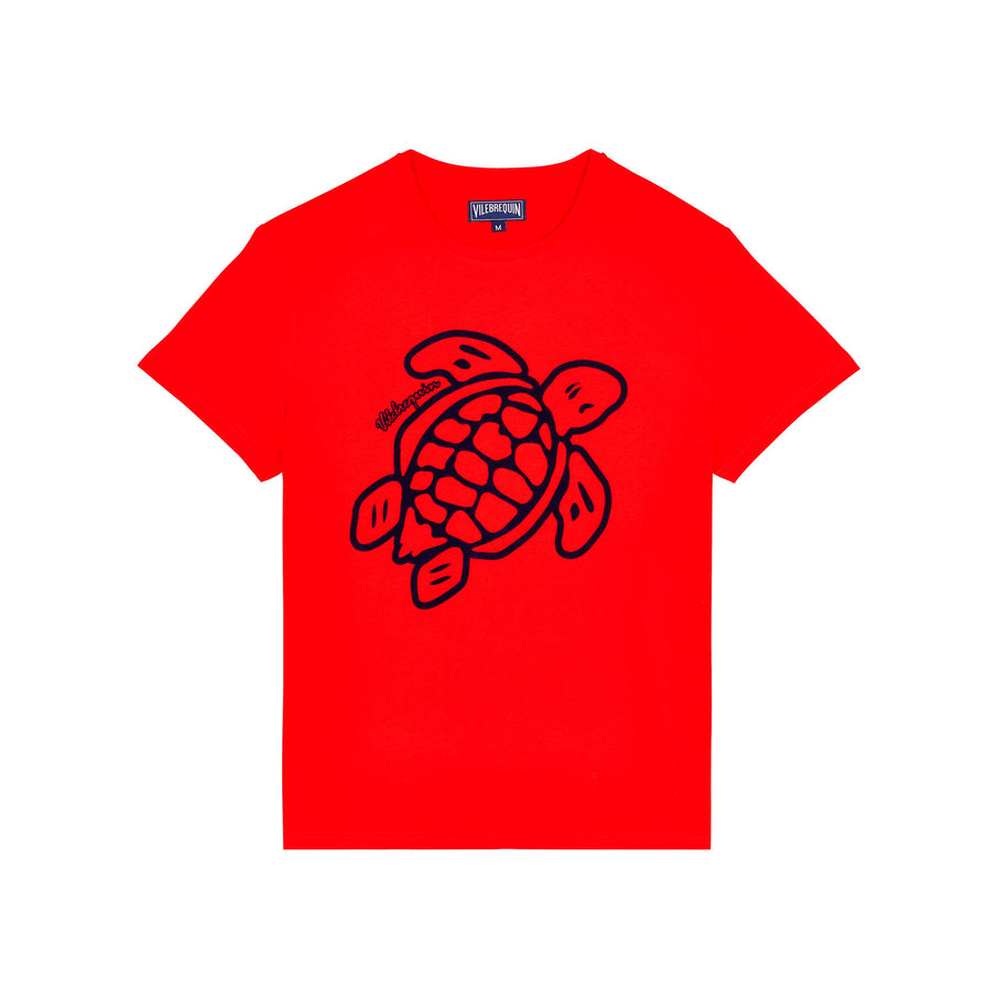 Organic Cotton T-shirt Flocked Turtle Heart Tahiti