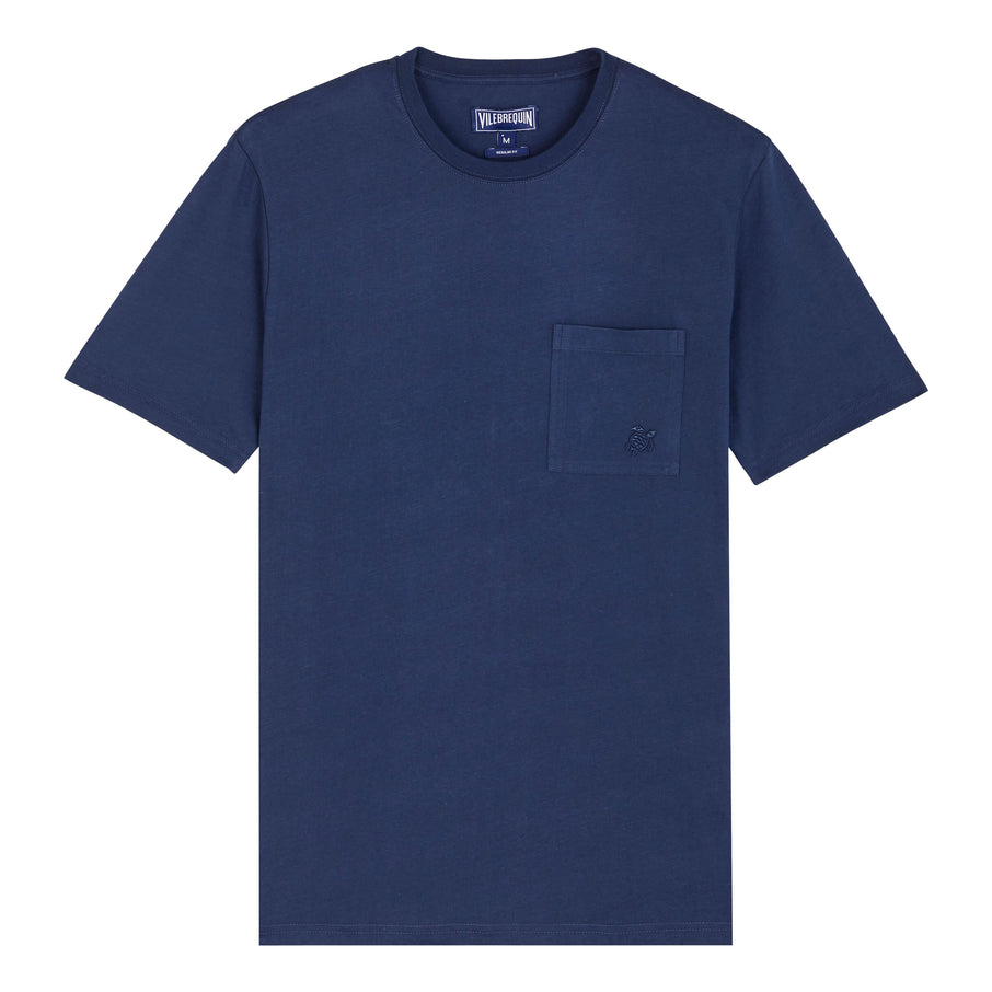 Organic Cotton T-Shirt Placed Embroidered Turtle