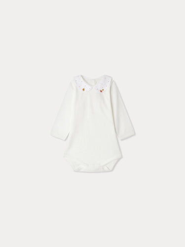 Swan bodysuit with strawberry embroidered collar in organic cotton- Regular price