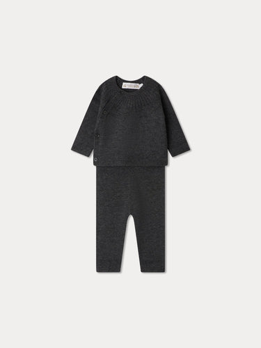 Jina set with fancy stitch on the neckline in heather gray wool- Regular price