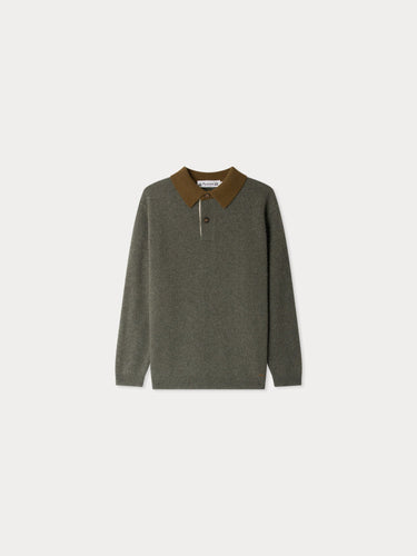 Jameson Khaki Cashmere Contrast Collar Sweater- Regular price