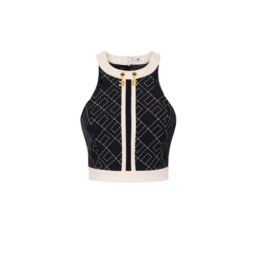 Knit top in viscose and silk fabric with jewel detail- Regular price