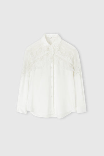 Cotton poplin shirt with rebrodé lace bustier- Regular price