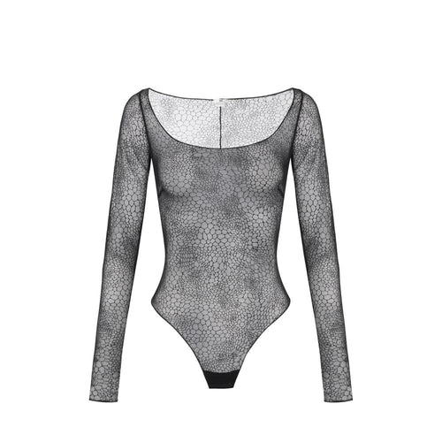 Bodysuit in jacquard tulle fabric with snake pattern- Regular price