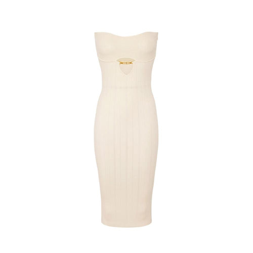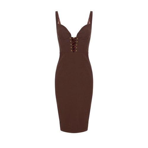 Dress in bi-elastic fabric with criss-cross details- Regular price