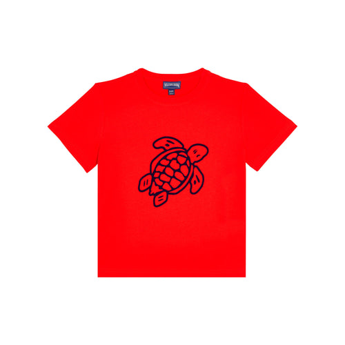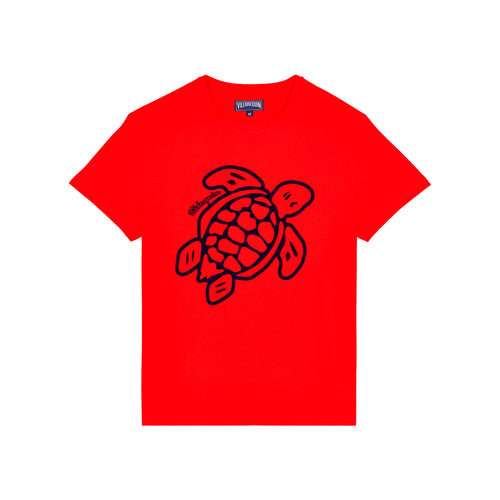 Organic Cotton T-Shirt Placed Embroidered Turtle- Regular price