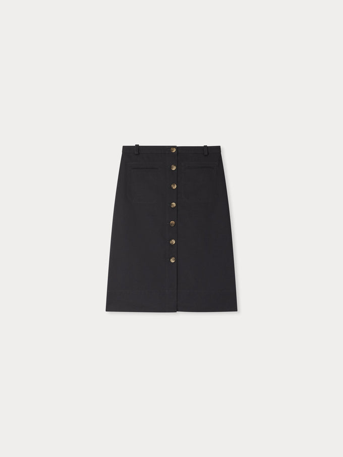 Suzon skirt with elasticated waist in green organic cotton velvet