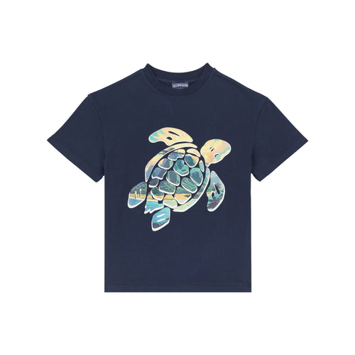 Organic Cotton T-shirt Flocked Turtle Heart Tahiti- Regular price