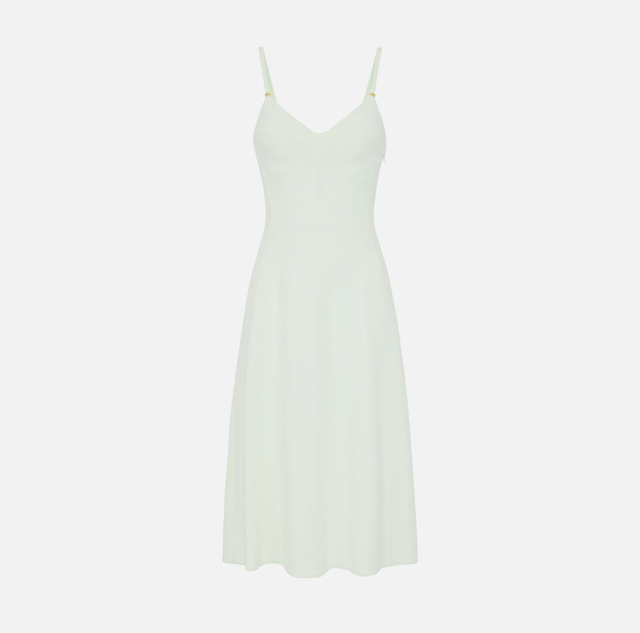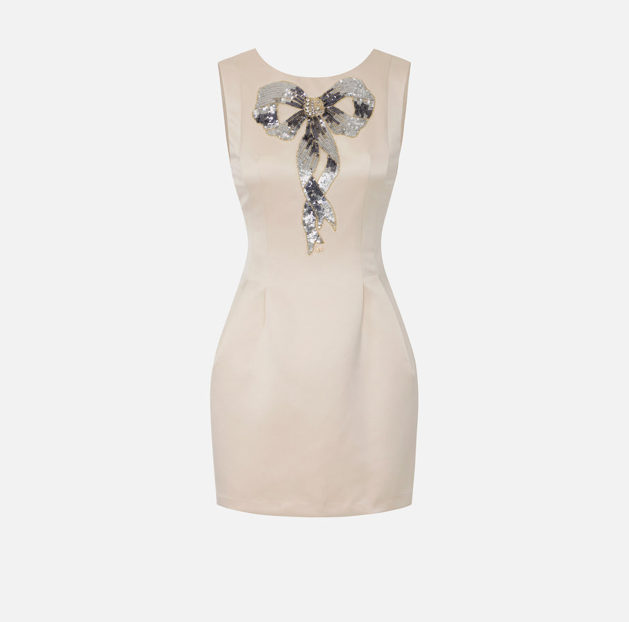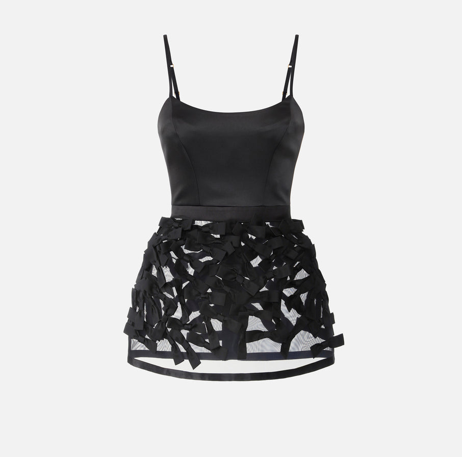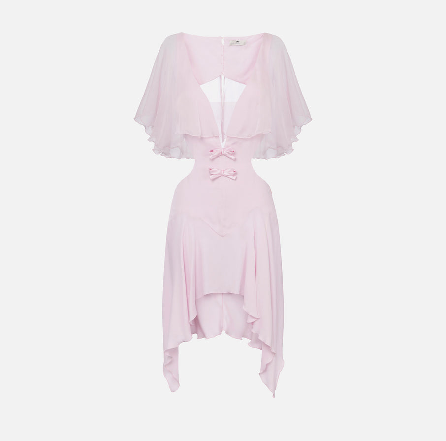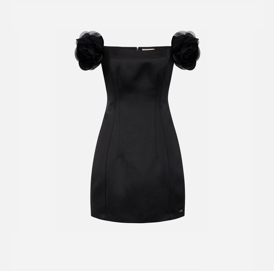 Dress in lightweight double layer crêpe fabric with lace and flowers