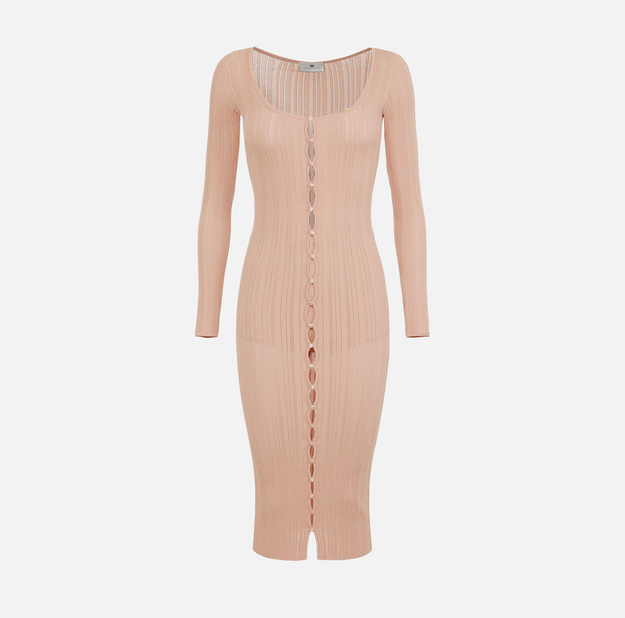 Dress in ribbed knit fabric with decorative buttons