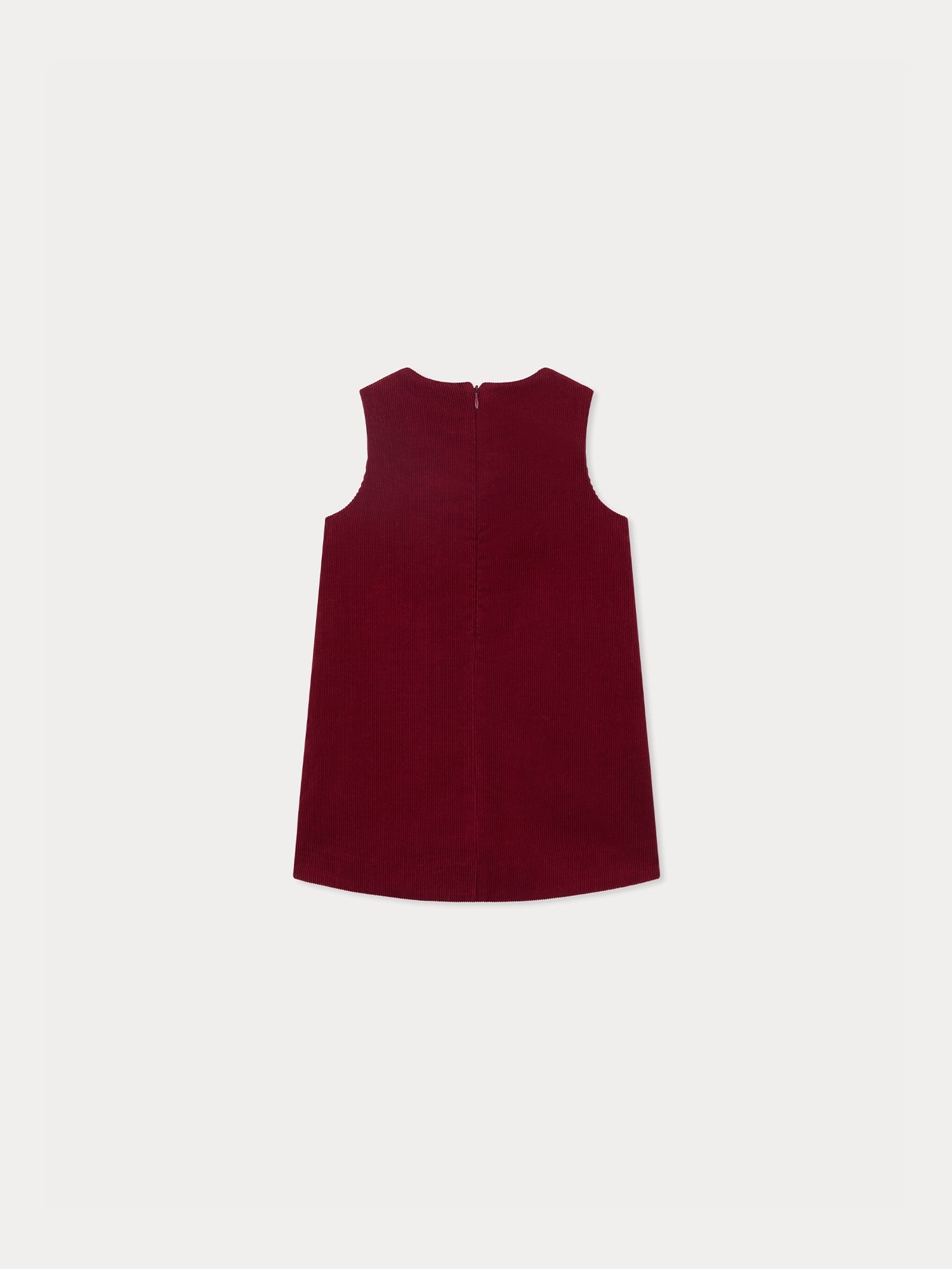 This must-have corduroy Jolla dress for girls features a flared cut. Its tone-on-tone lining adds optimal comfort and the hidden zipper on the back makes it easy to put on. An embroidered cherry adorns the chest of this sleeveless piece which can be worn alone or with a long-sleeved T-shirt underneath it.
