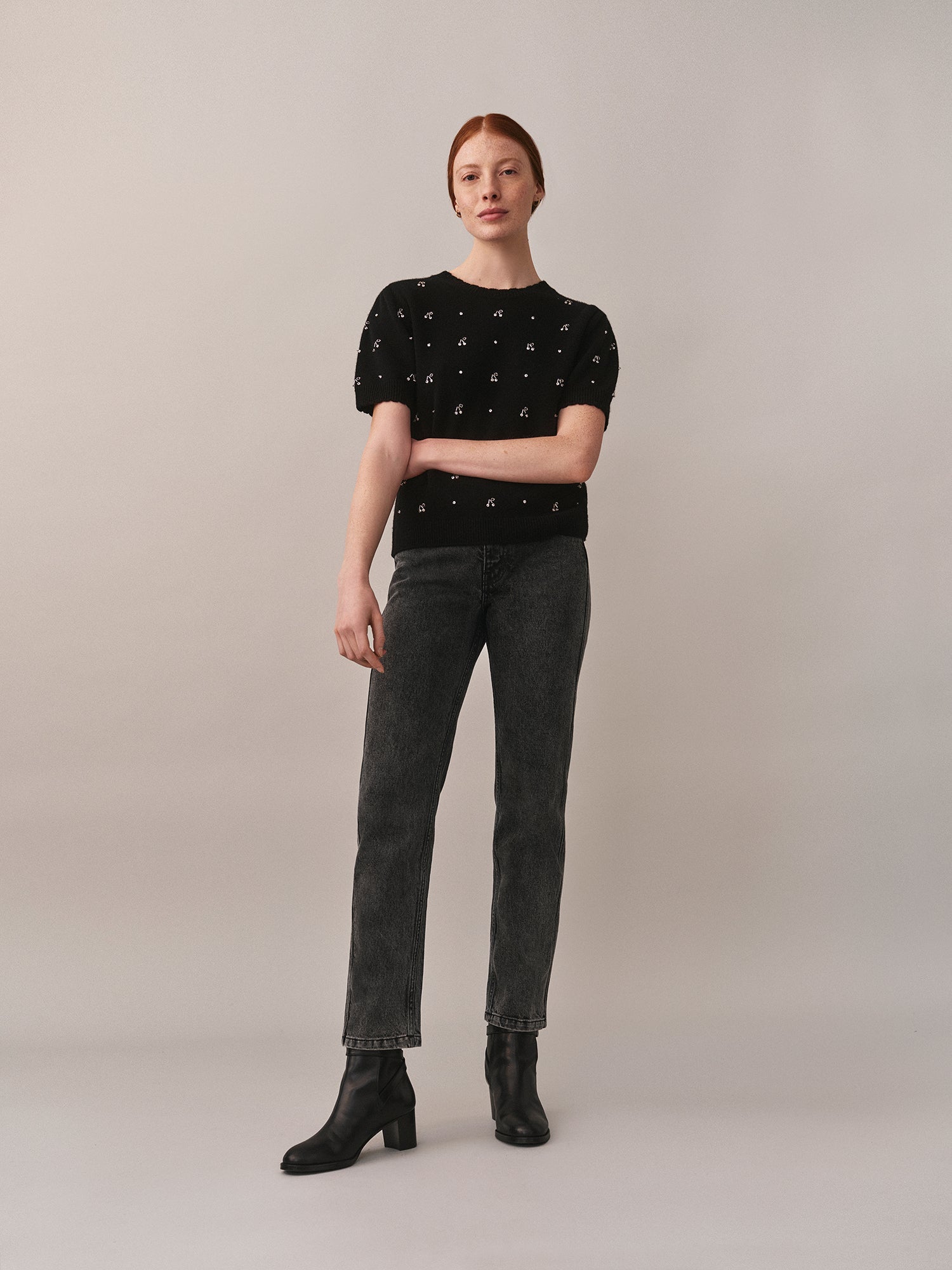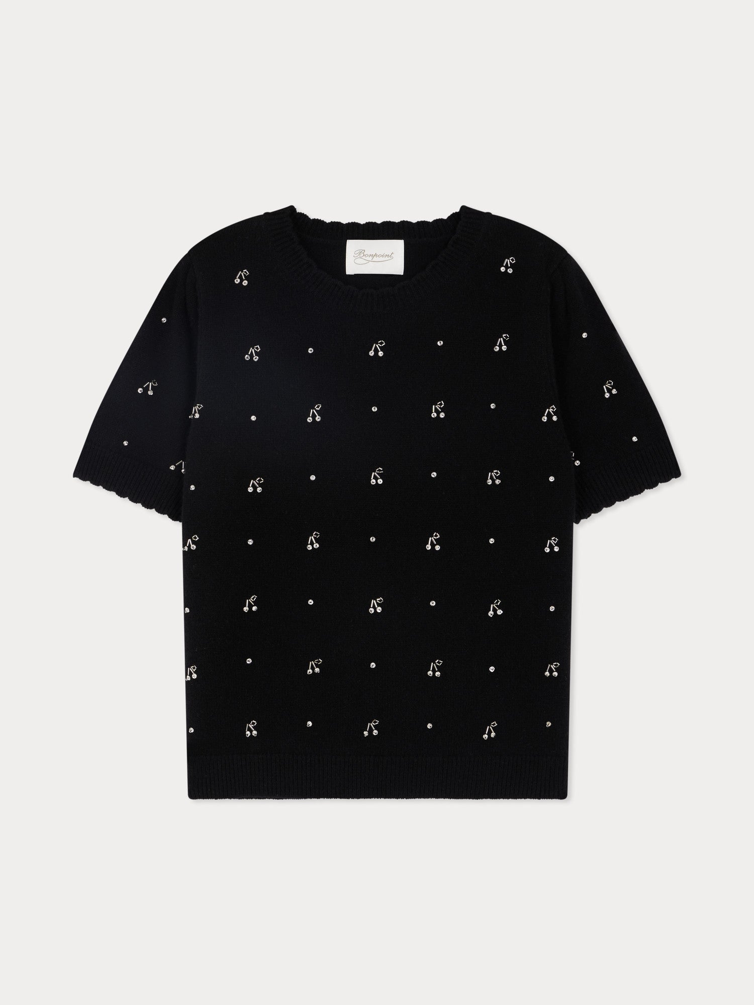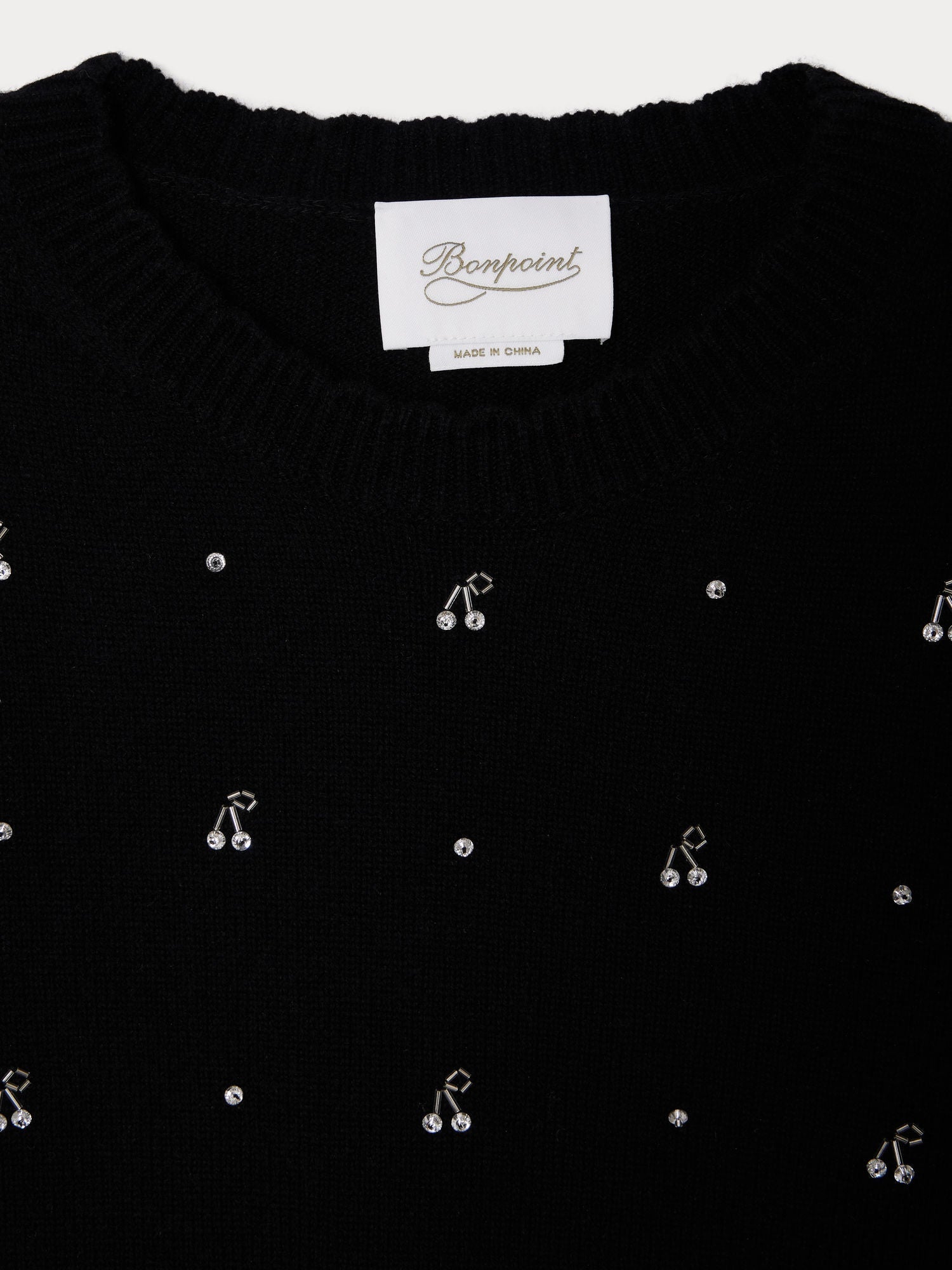 Jossia sweater with cherry pearl embroidery in wool and cashmere