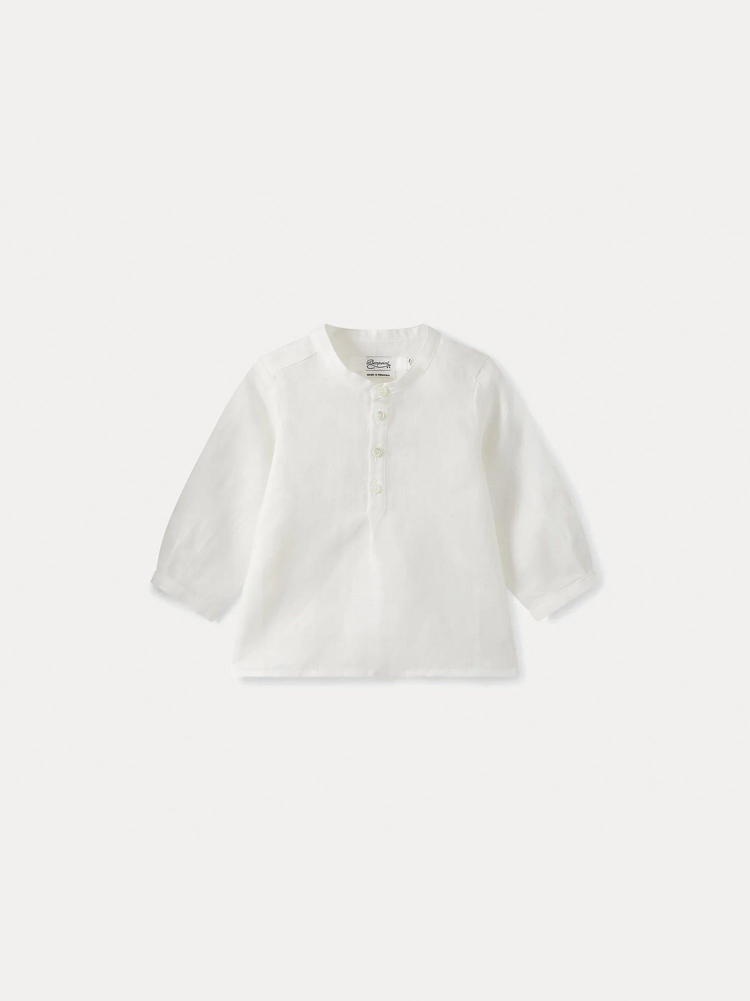 The beautiful Polisson tunic combines clean-cut styling and natural material. It has a Tunisian collar, a half-open button placket, long sleeves with buttoned cuffs and two small slits on the sides.