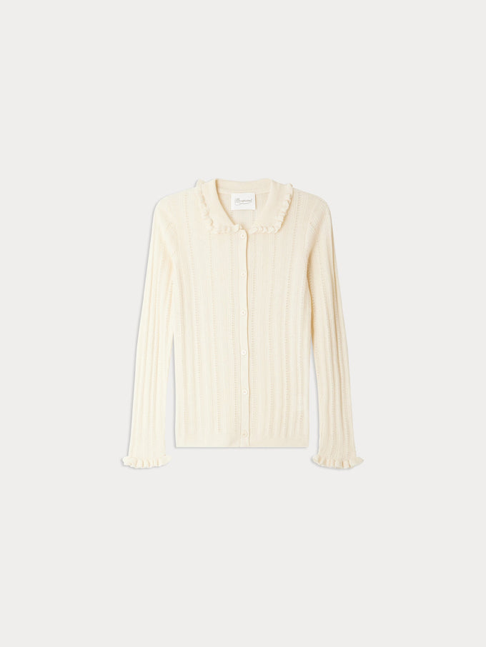 Jimini cardigan with fancy stitch collar in wool and silk