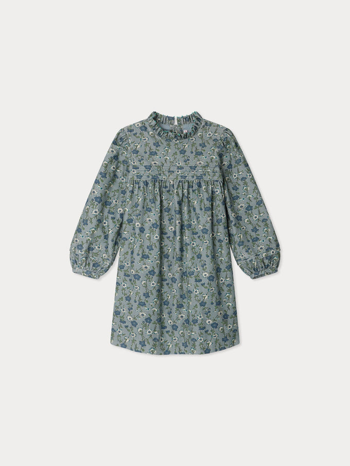 Topaz dress with embroidered collar and pleated Liberty velvet fabric