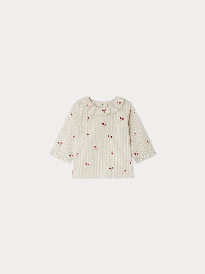 Ganiti blouse in striped organic cotton with cherry embroidery