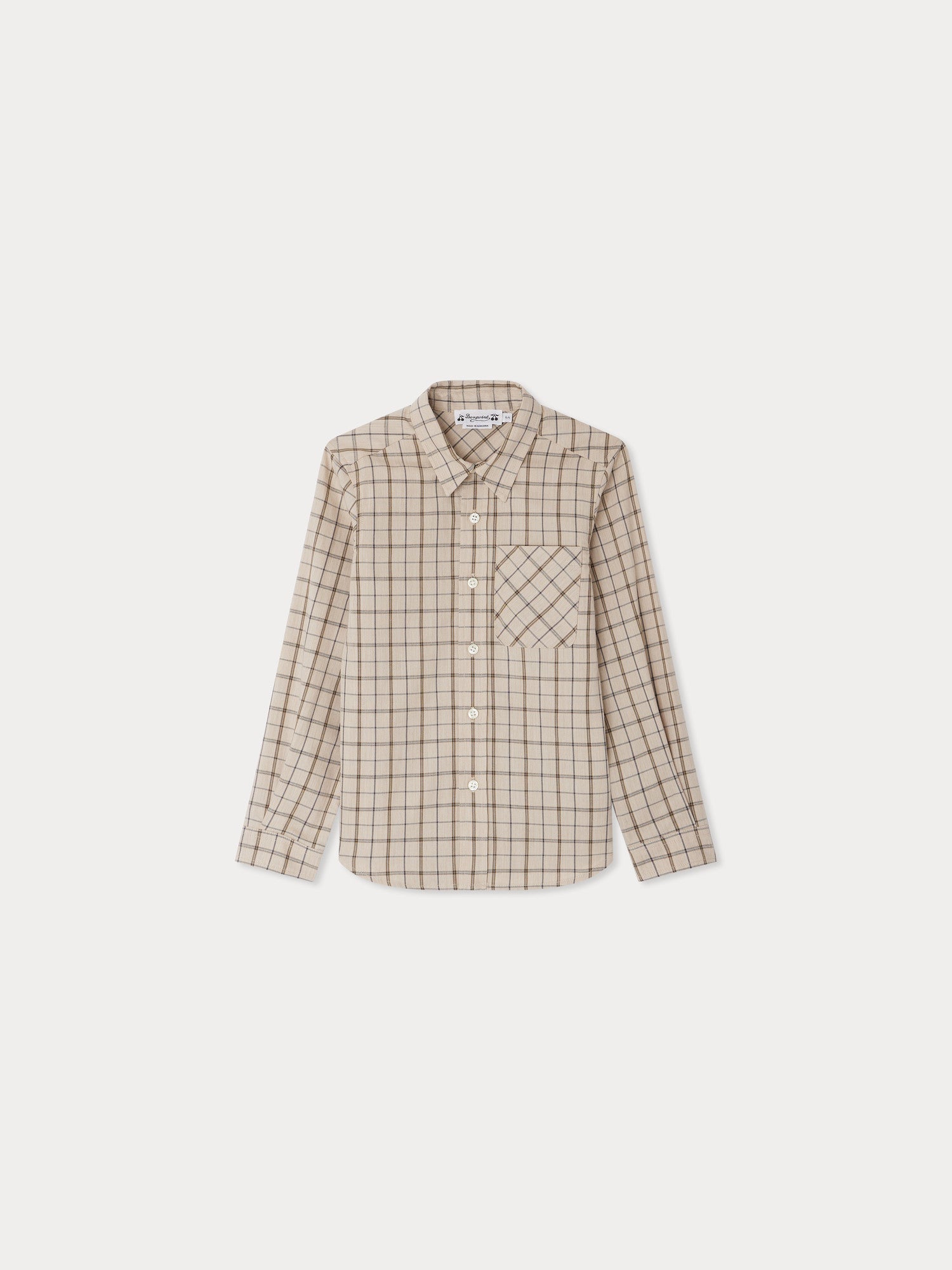 This Tango shirt for boys features an original take on the classic checked print. Its diagonal chest patch pocket adds a design touch. This cotton twill and wool blend shirt is both warm and soft to wear. The pointed collar is inspired by grown-ups' wardrobes.