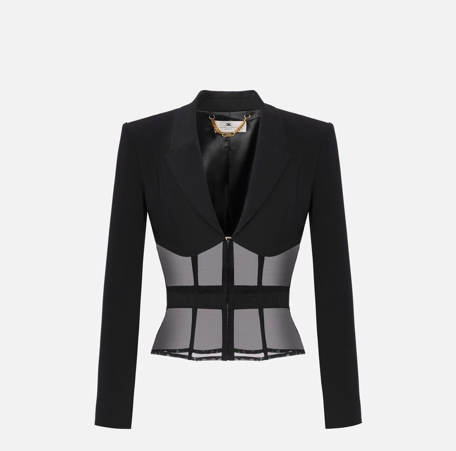 Jacket in lightweight double-layer crêpe fabric with logoed buttons