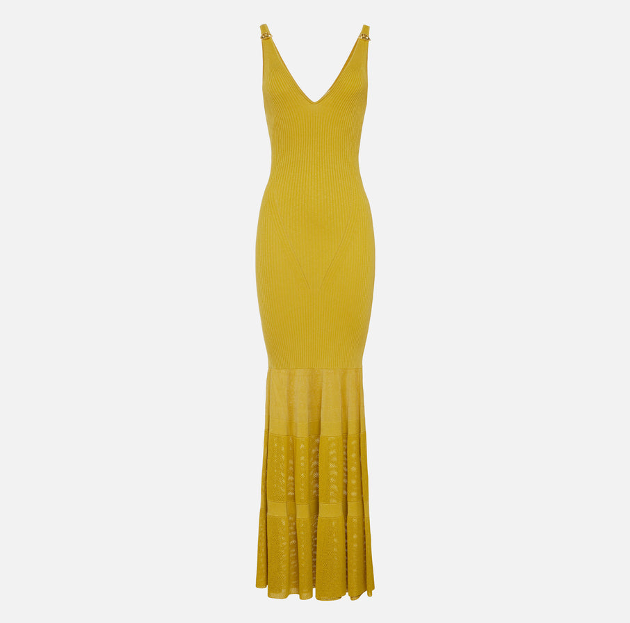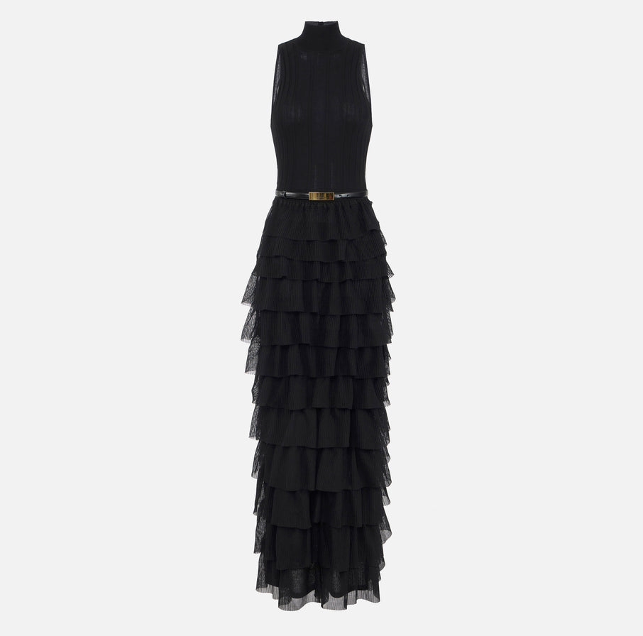 Red Carpet knit dress with flounces