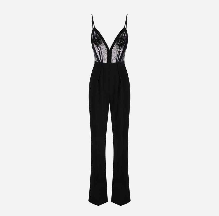 Jumpsuit in lightweight crêpe fabric with floral embroideries