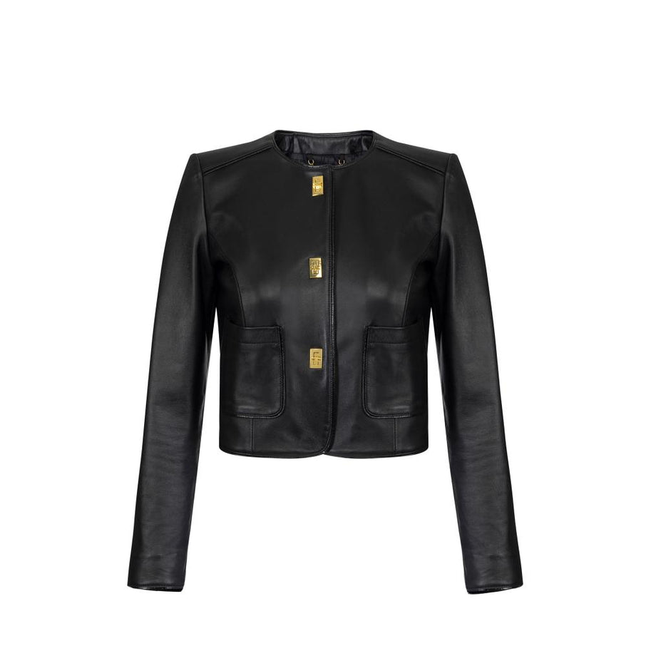 Leather jacket with vinyl details