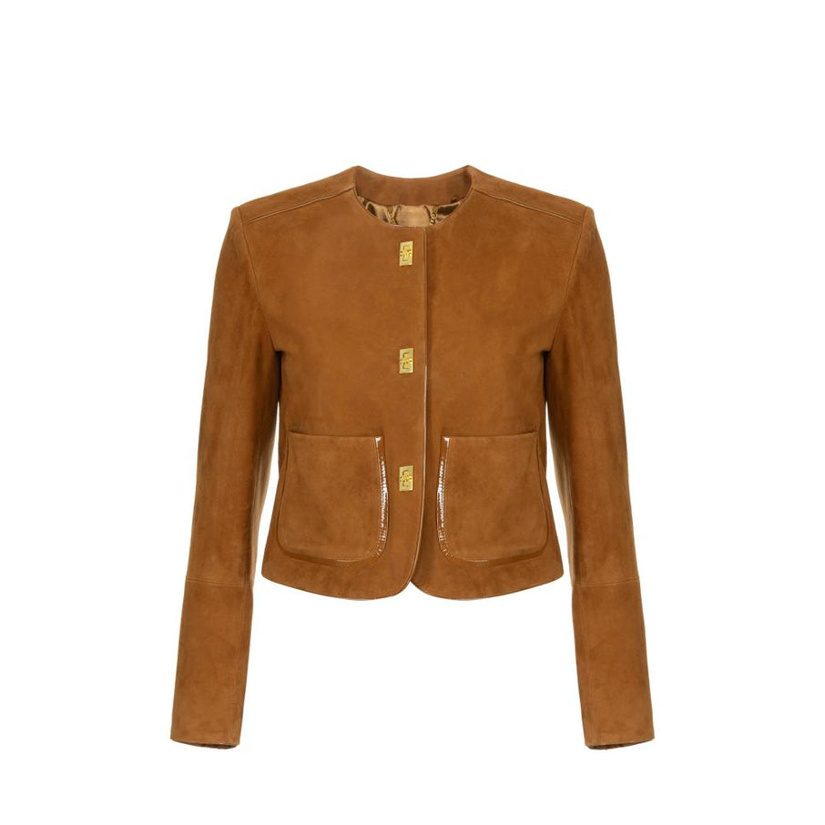 Jacket in suede with vinyl details
