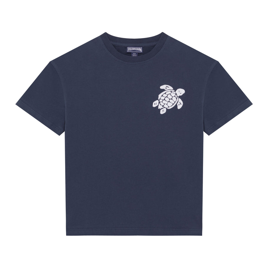 Organic Cotton T-shirt Flocked Turtle Heart Tahiti